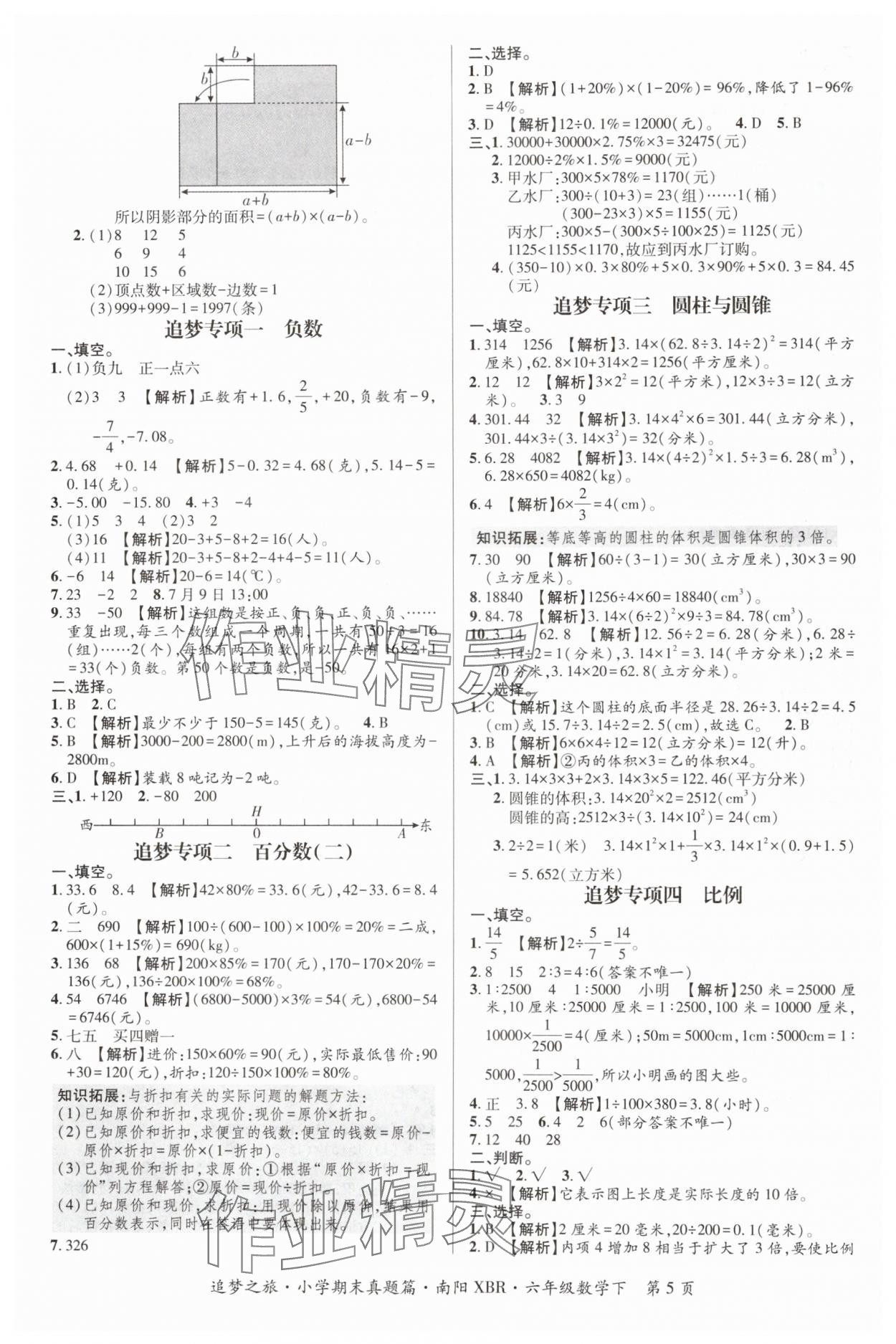2024年追梦之旅小学期末真题篇六年级数学下册人教版南阳专版