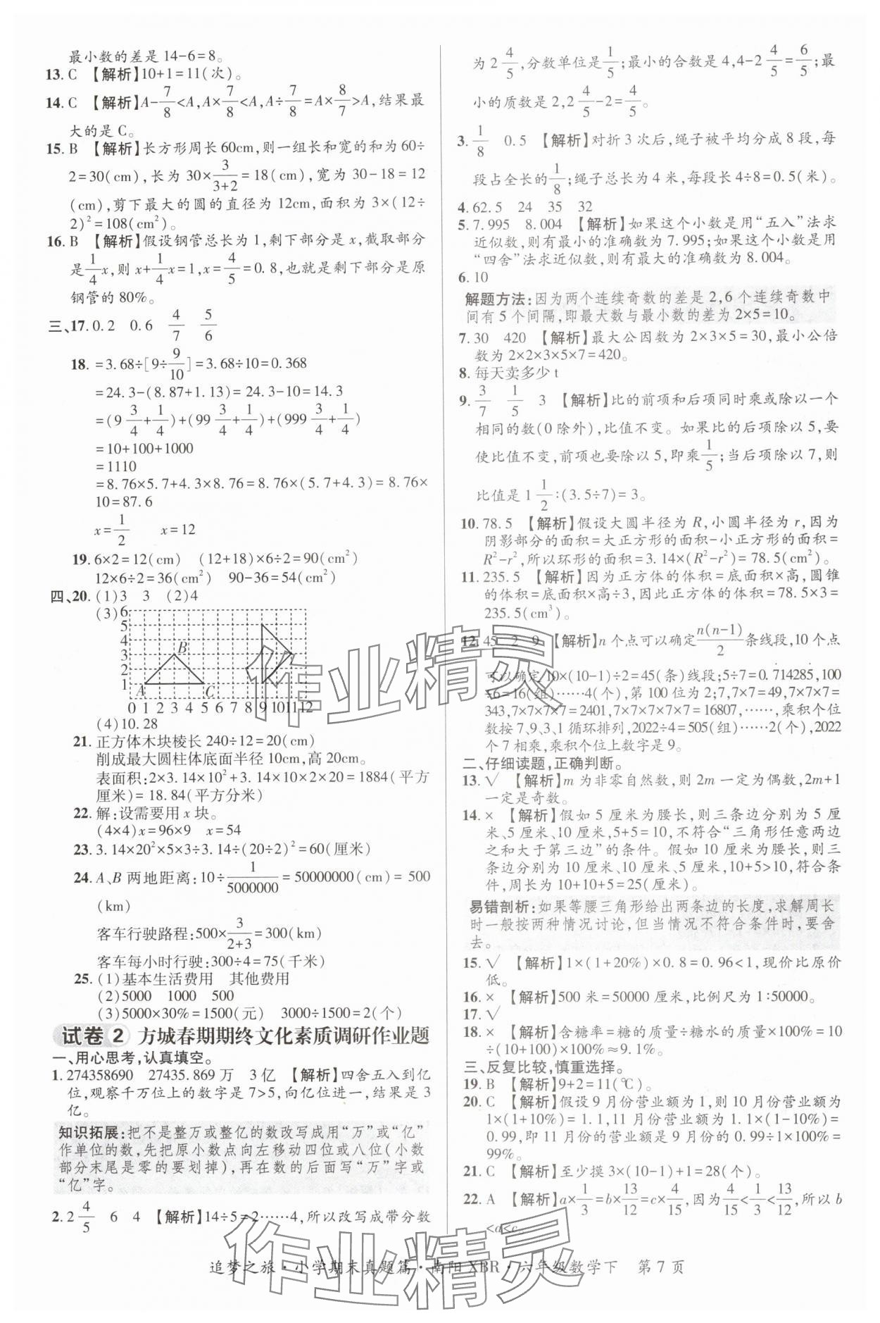 注:目前有些书本章节名称可能整理的还不是很完善,但都是按照顺序排列的,请同学们按照顺序仔细查找。练习册 2024年追梦之旅小学期末真题篇六年级数学下册人教版南阳专版 答案主要是用来给同学们做完题方便对答案用的,请勿直接抄袭。