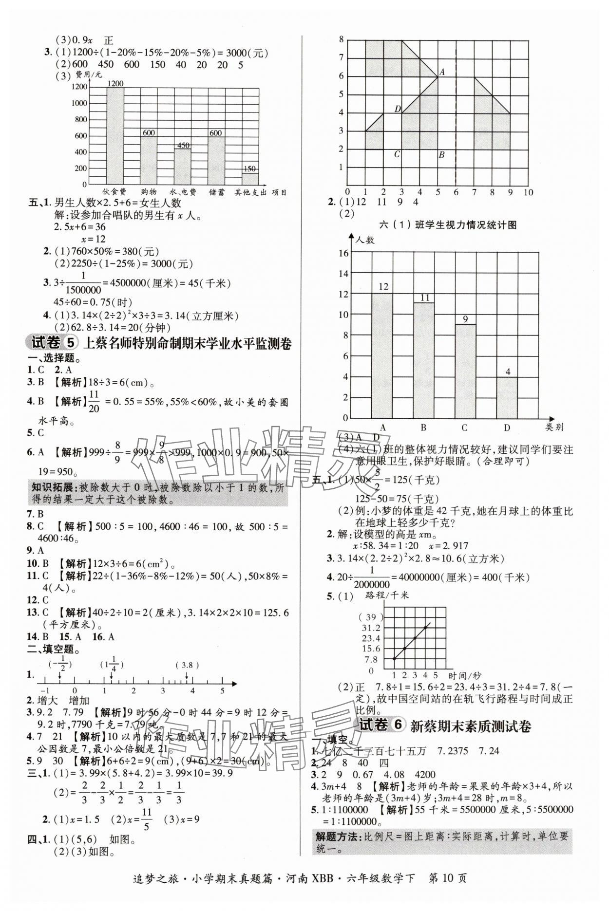 注:目前有些书本章节名称可能整理的还不是很完善,但都是按照顺序排列的,请同学们按照顺序仔细查找。练习册 2024年追梦之旅小学期末真题篇六年级数学下册北师大版河南专版 答案主要是用来给同学们做完题方便对答案用的,请勿直接抄袭。