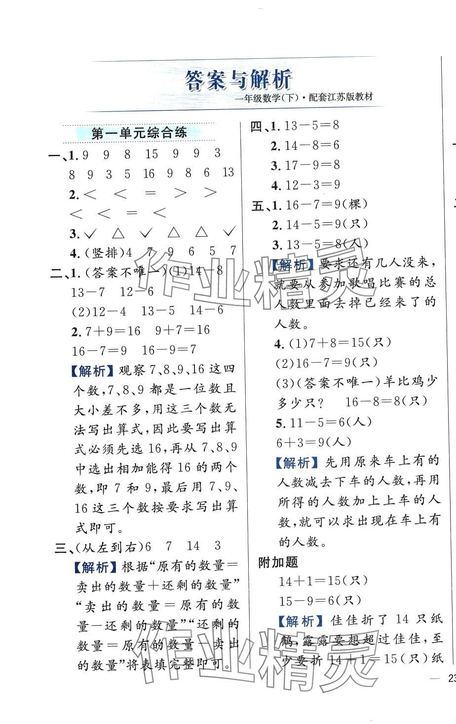 注:目前有些书本章节名称可能整理的还不是很完善,但都是按照顺序排列的,请同学们按照顺序仔细查找。练习册 2024年教材全练一年级数学下册苏教版 答案主要是用来给同学们做完题方便对答案用的,请勿直接抄袭。