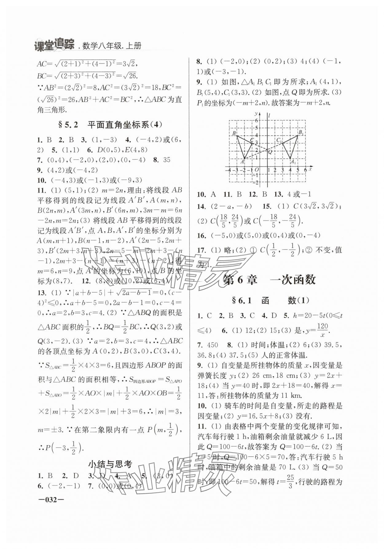 注:目前有些书本章节名称可能整理的还不是很完善,但都是按照顺序排列的,请同学们按照顺序仔细查找。练习册 2024年课堂追踪八年级数学上册苏科版 答案主要是用来给同学们做完题方便对答案用的,请勿直接抄袭。
