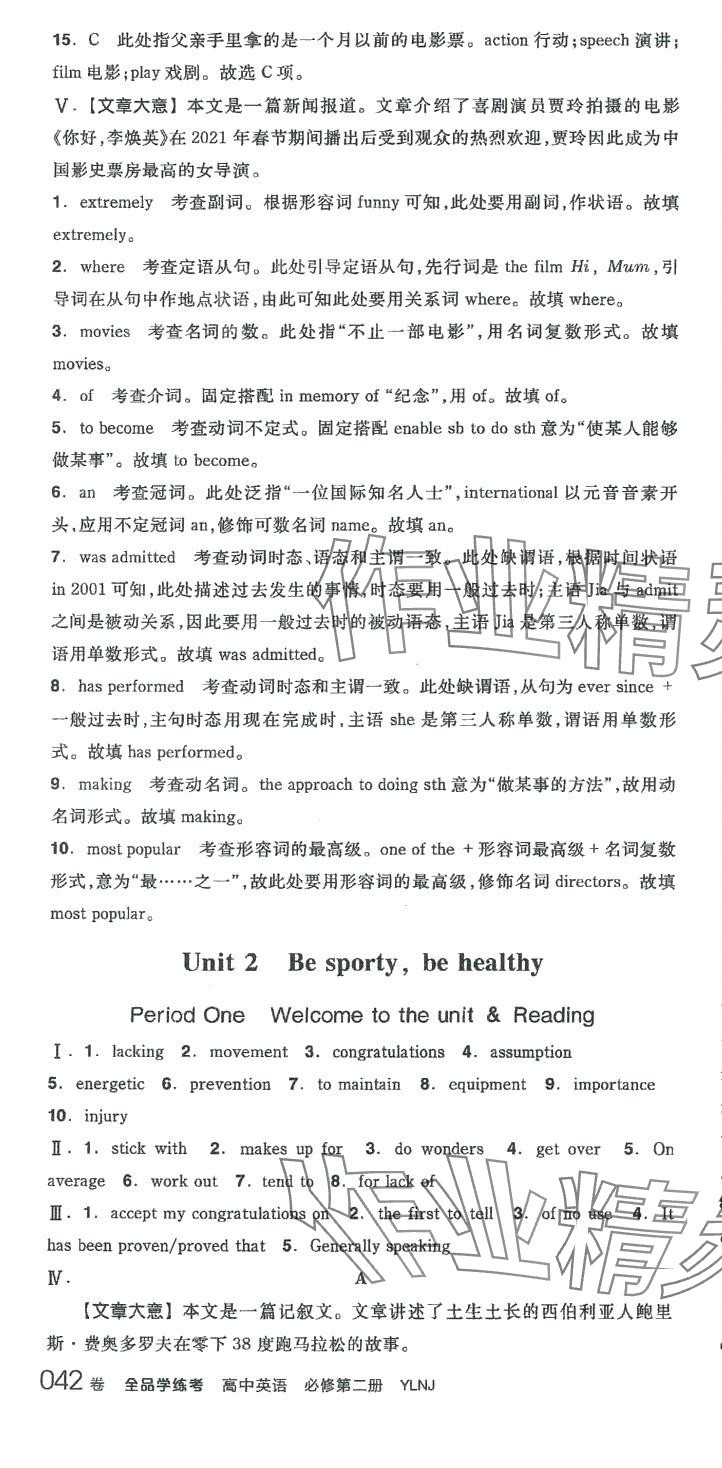 注:目前有些书本章节名称可能整理的还不是很完善,但都是按照顺序排列的,请同学们按照顺序仔细查找。练习册 2024年全品学练考高中英语必修第二册译林版 答案主要是用来给同学们做完题方便对答案用的,请勿直接抄袭。