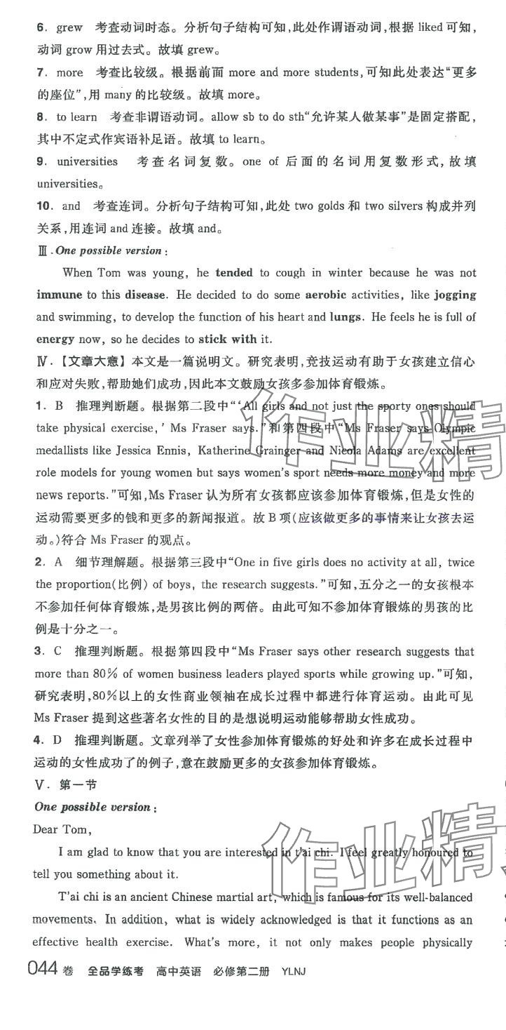 注:目前有些书本章节名称可能整理的还不是很完善,但都是按照顺序排列的,请同学们按照顺序仔细查找。练习册 2024年全品学练考高中英语必修第二册译林版 答案主要是用来给同学们做完题方便对答案用的,请勿直接抄袭。