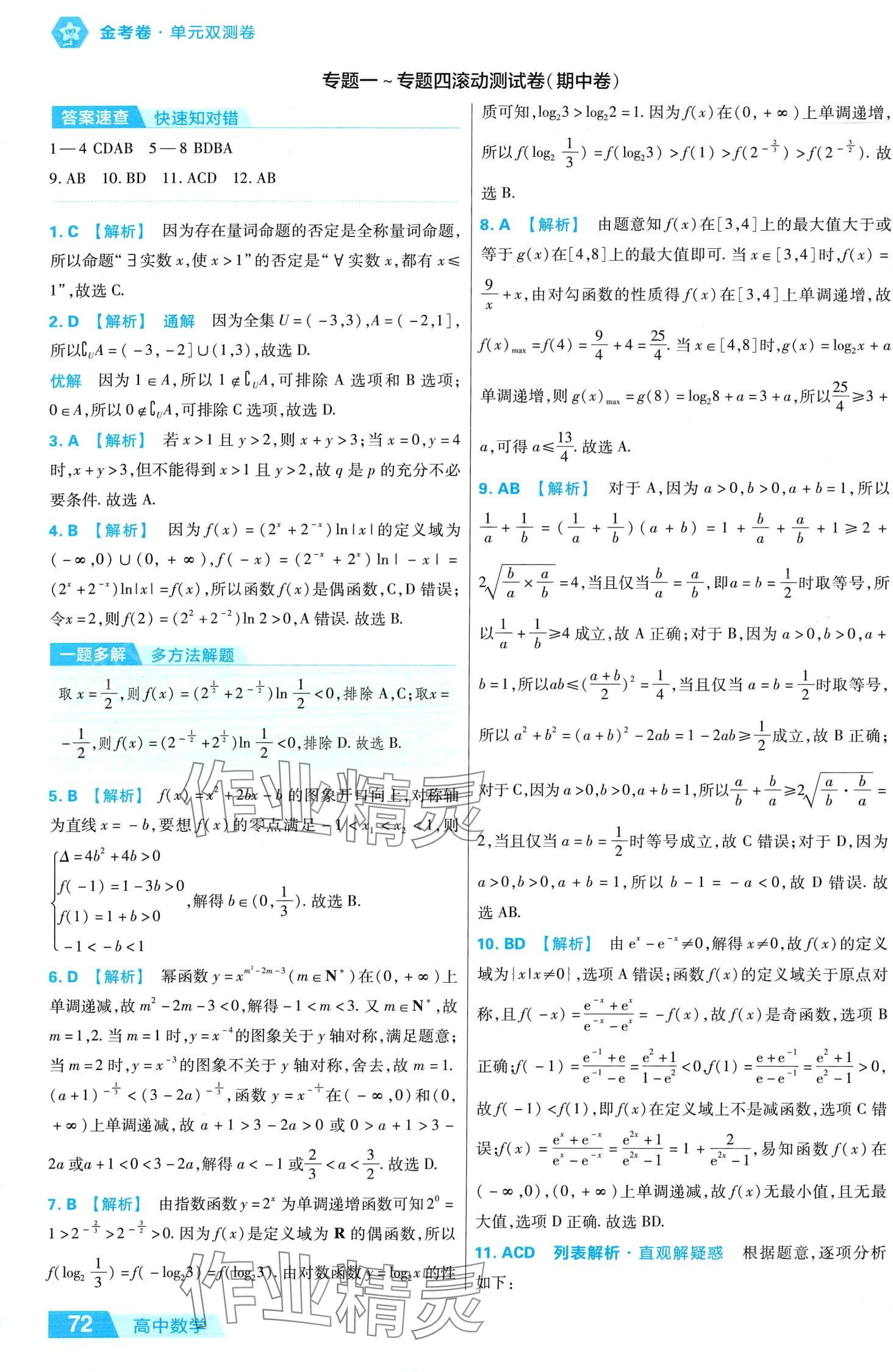 注:目前有些书本章节名称可能整理的还不是很完善,但都是按照顺序排列的,请同学们按照顺序仔细查找。练习册 2024年金考卷活页题选高中数学必修1北师大版 答案主要是用来给同学们做完题方便对答案用的,请勿直接抄袭。