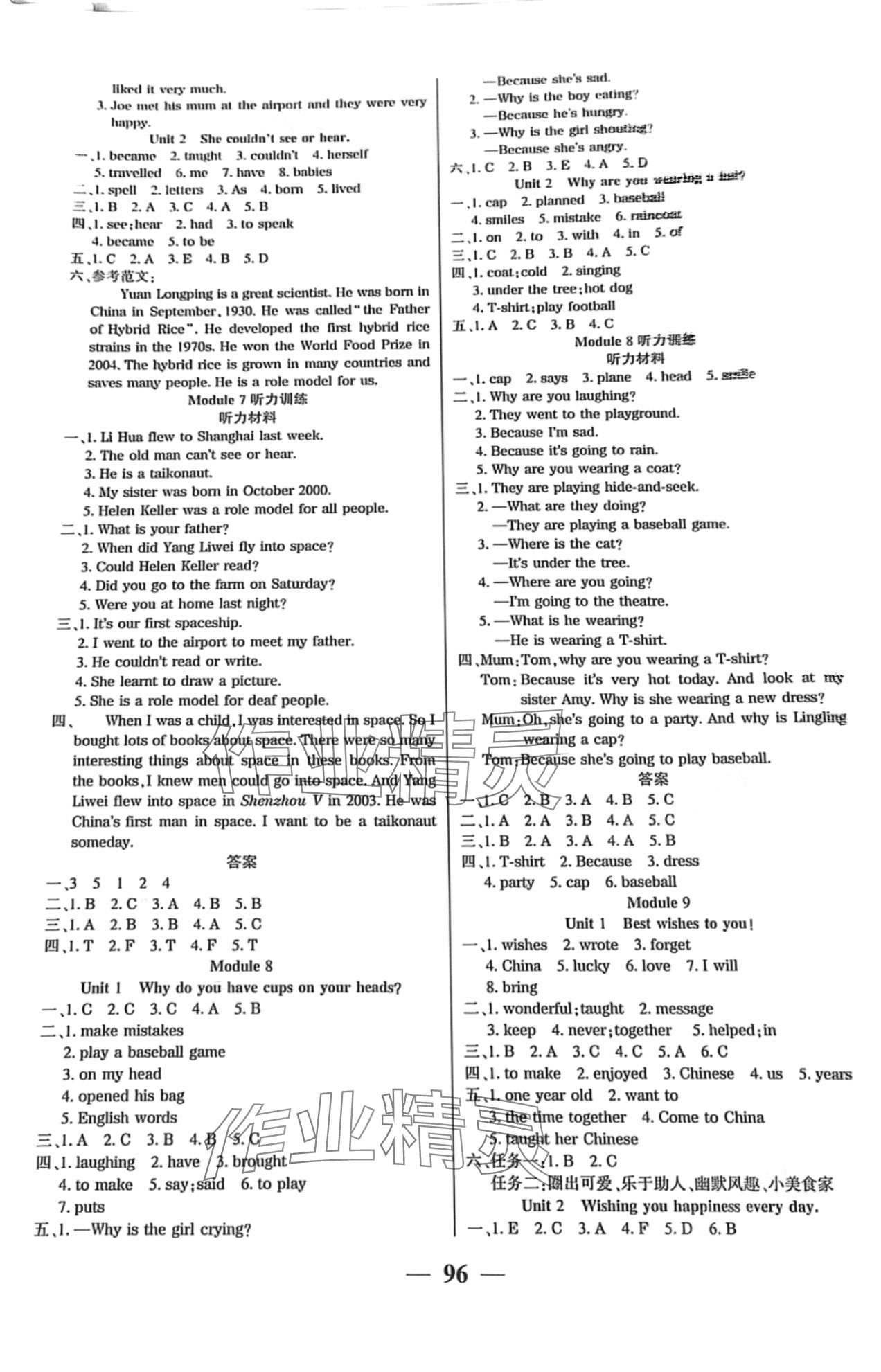 注:目前有些书本章节名称可能整理的还不是很完善,但都是按照顺序排列的,请同学们按照顺序仔细查找。练习册 2024年全优学习达标训练六年级英语下册外研版 答案主要是用来给同学们做完题方便对答案用的,请勿直接抄袭。