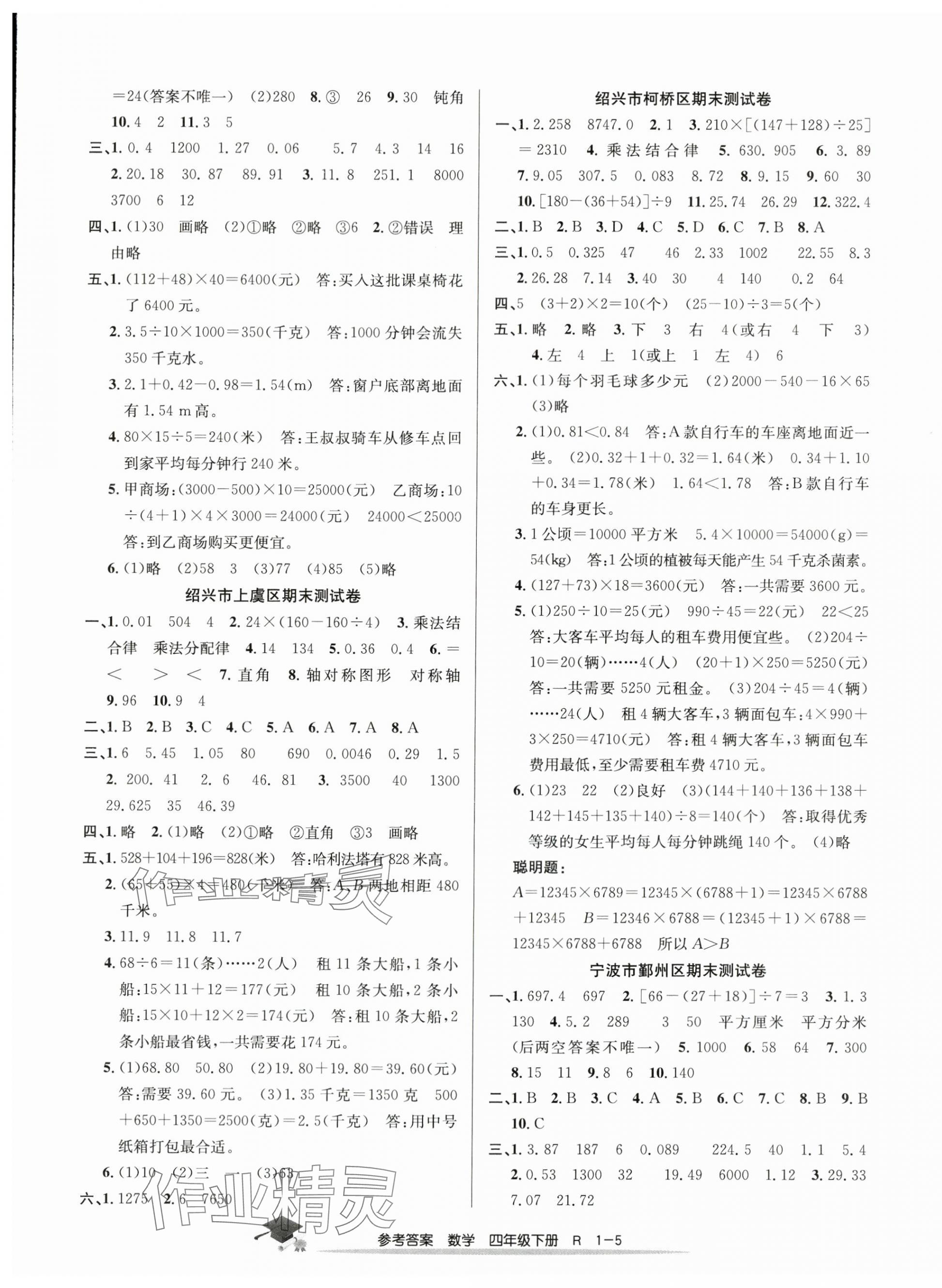 注:目前有些书本章节名称可能整理的还不是很完善,但都是按照顺序排列的,请同学们按照顺序仔细查找。练习册 2024年期末直通车四年级数学下册人教版 答案主要是用来给同学们做完题方便对答案用的,请勿直接抄袭。