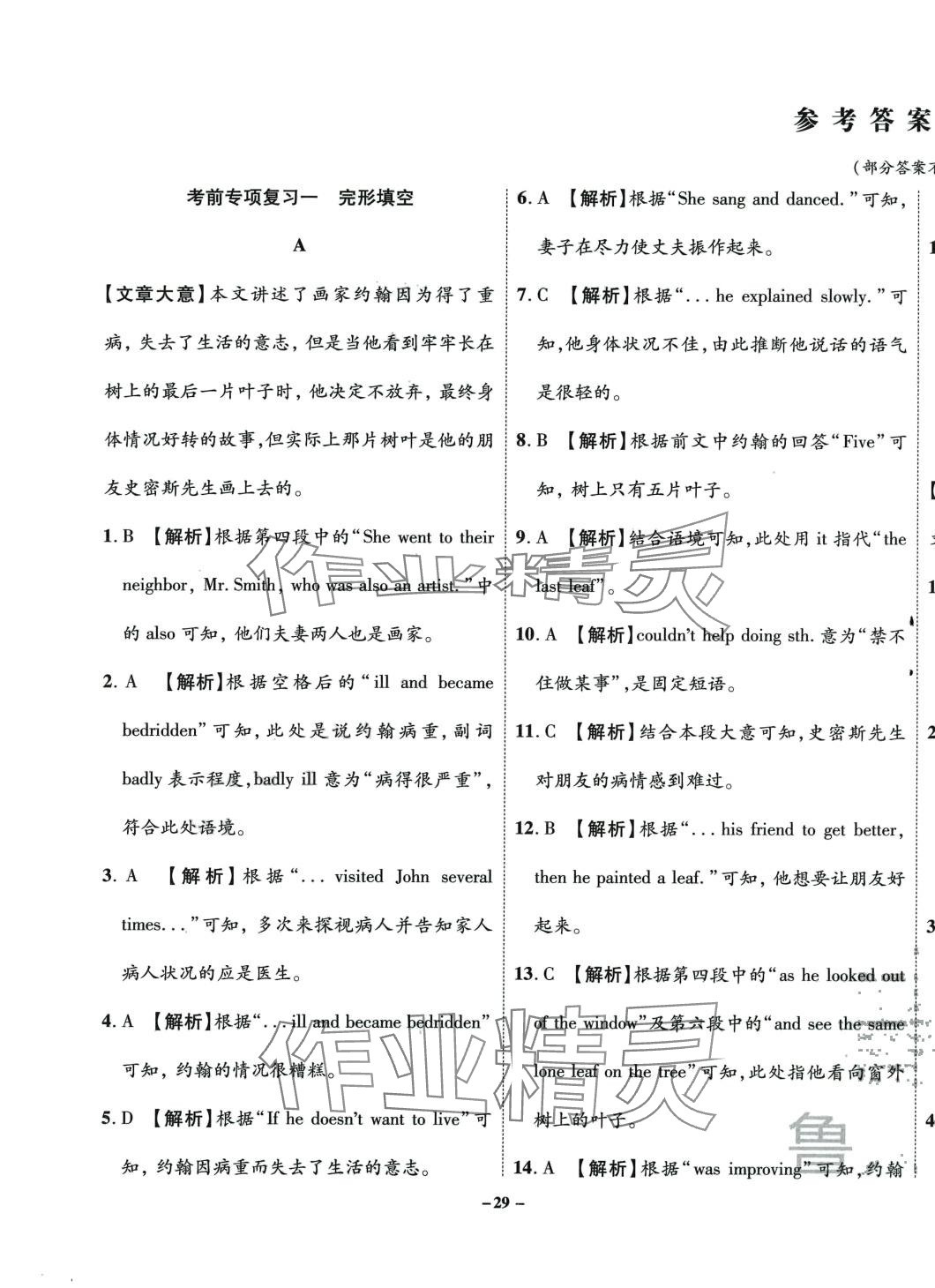 注:目前有些书本章节名称可能整理的还不是很完善,但都是按照顺序排列的,请同学们按照顺序仔细查找。练习册 2024年考前示范卷九年级英语全一册通用版 答案主要是用来给同学们做完题方便对答案用的,请勿直接抄袭。