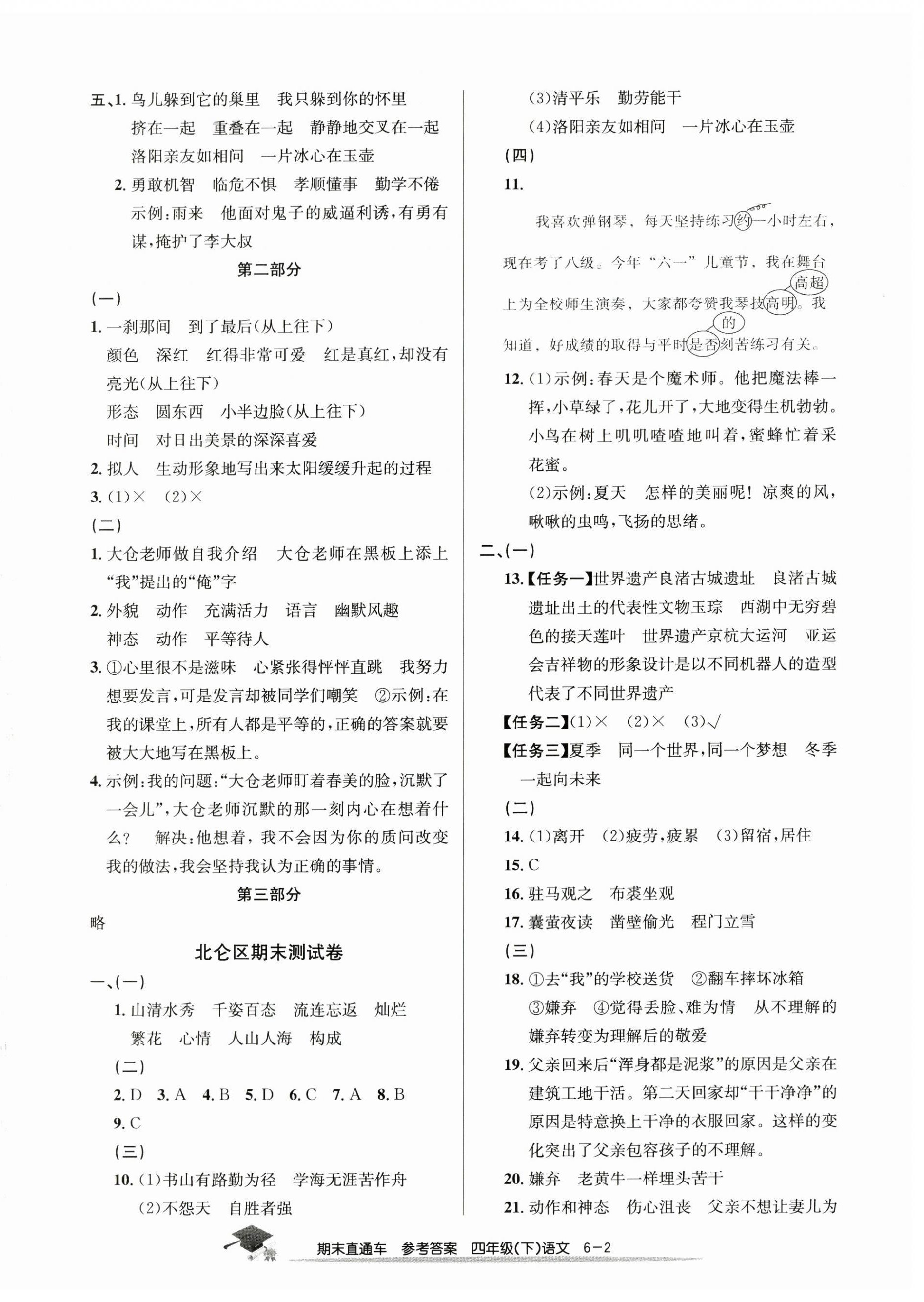 注:目前有些书本章节名称可能整理的还不是很完善,但都是按照顺序排列的,请同学们按照顺序仔细查找。练习册 2024年期末直通车四年级语文下册人教版 答案主要是用来给同学们做完题方便对答案用的,请勿直接抄袭。