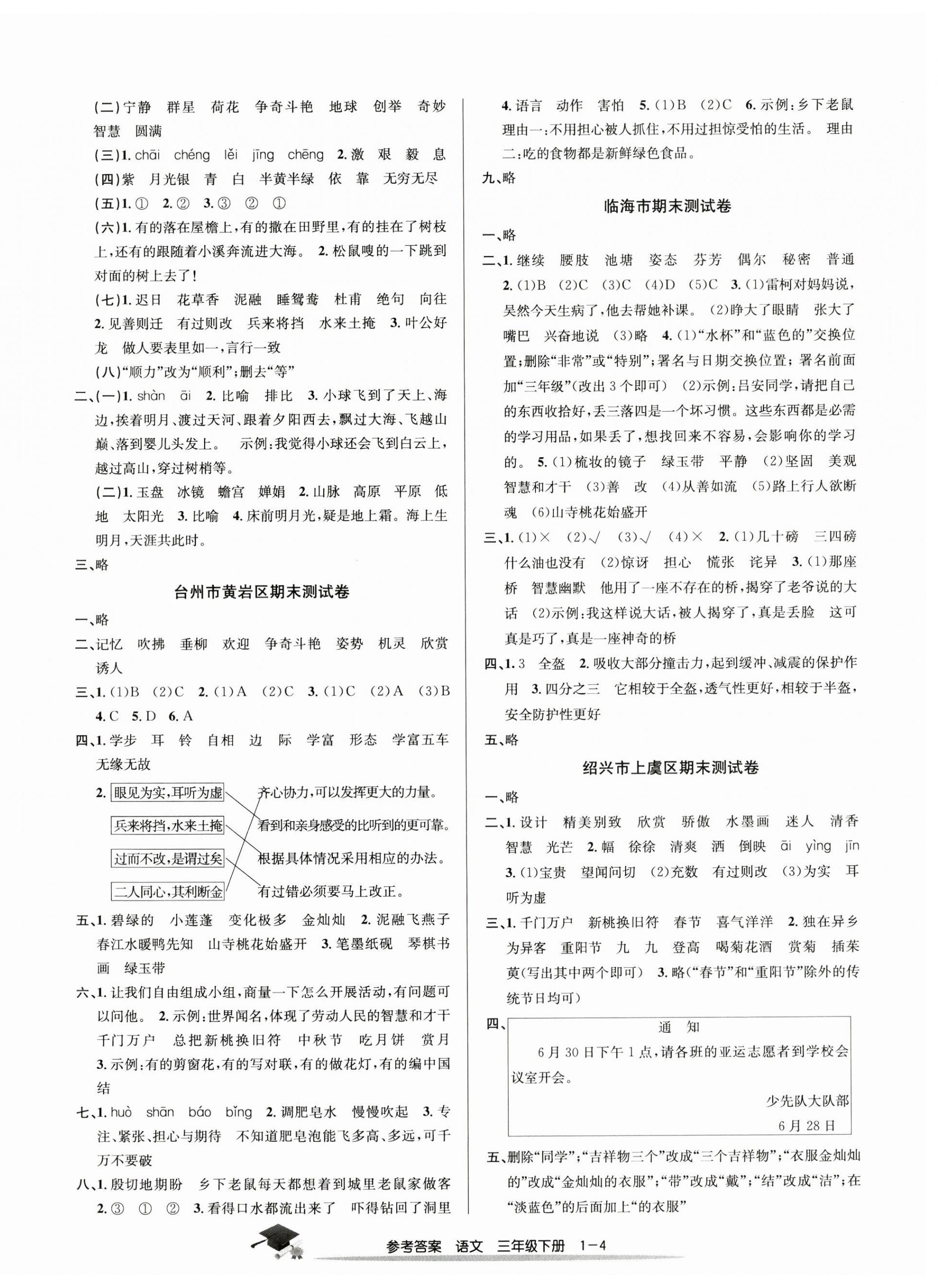 注:目前有些书本章节名称可能整理的还不是很完善,但都是按照顺序排列的,请同学们按照顺序仔细查找。练习册 2024年期末直通车三年级语文下册人教版 答案主要是用来给同学们做完题方便对答案用的,请勿直接抄袭。