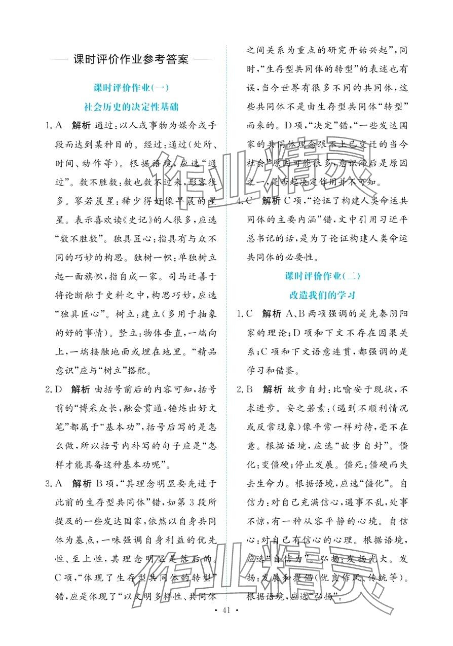 注:目前有些书本章节名称可能整理的还不是很完善,但都是按照顺序排列的,请同学们按照顺序仔细查找。练习册 2024年能力培养与测试高中语文选择性必修中册 答案主要是用来给同学们做完题方便对答案用的,请勿直接抄袭。