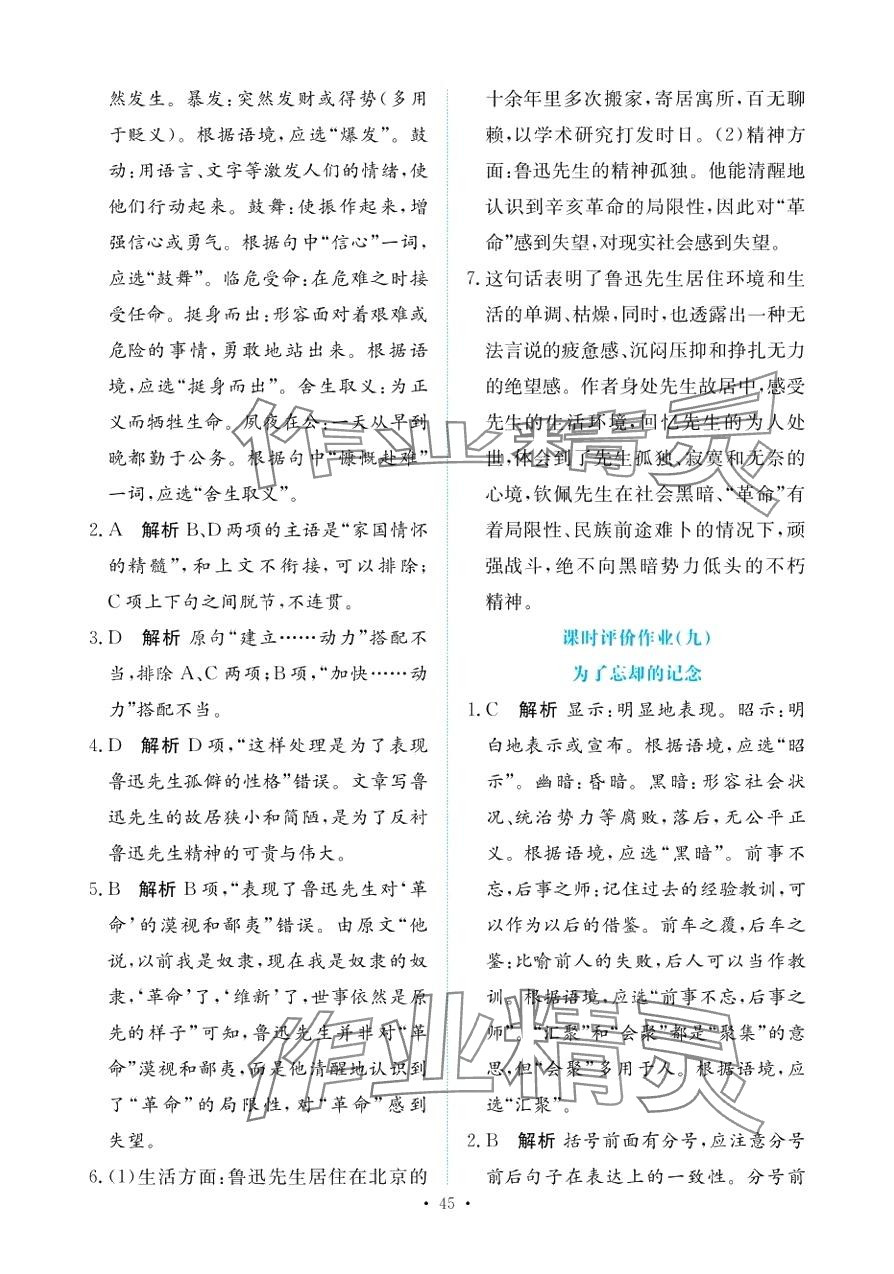 注:目前有些书本章节名称可能整理的还不是很完善,但都是按照顺序排列的,请同学们按照顺序仔细查找。练习册 2024年能力培养与测试高中语文选择性必修中册 答案主要是用来给同学们做完题方便对答案用的,请勿直接抄袭。