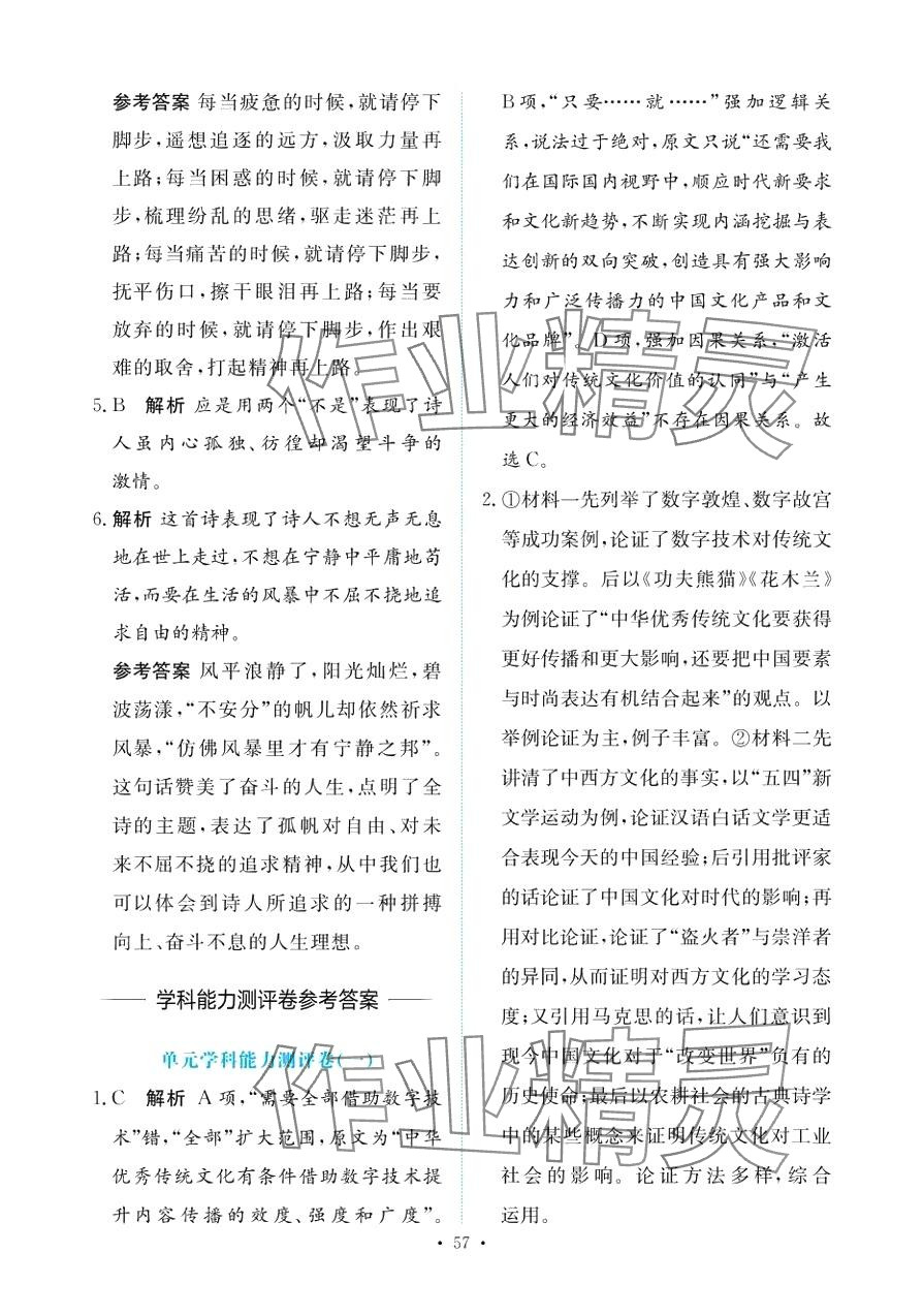 注:目前有些书本章节名称可能整理的还不是很完善,但都是按照顺序排列的,请同学们按照顺序仔细查找。练习册 2024年能力培养与测试高中语文选择性必修中册 答案主要是用来给同学们做完题方便对答案用的,请勿直接抄袭。