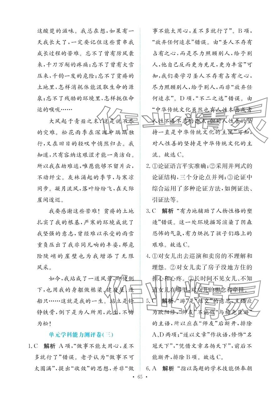 注:目前有些书本章节名称可能整理的还不是很完善,但都是按照顺序排列的,请同学们按照顺序仔细查找。练习册 2024年能力培养与测试高中语文选择性必修中册 答案主要是用来给同学们做完题方便对答案用的,请勿直接抄袭。