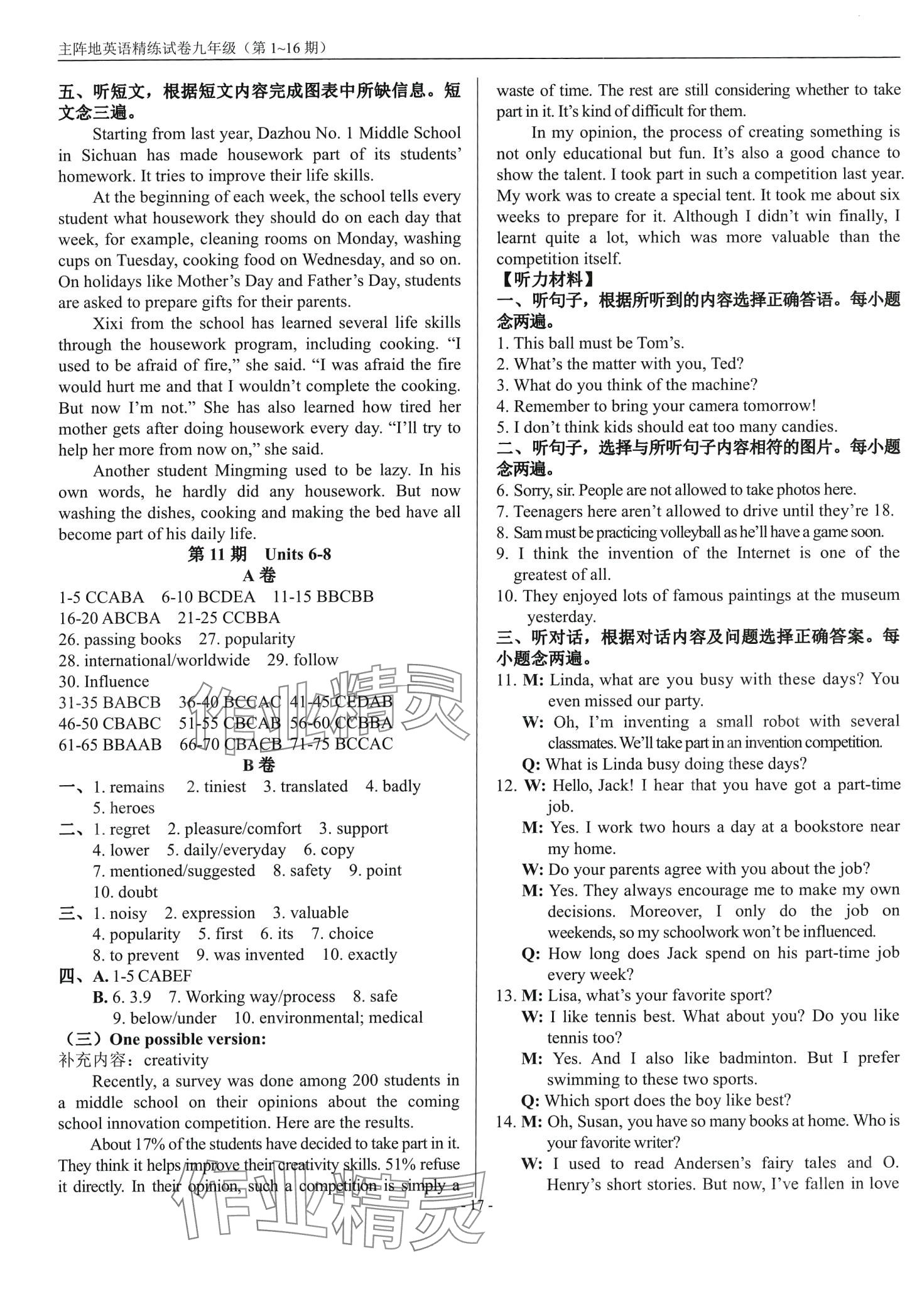 注:目前有些书本章节名称可能整理的还不是很完善,但都是按照顺序排列的,请同学们按照顺序仔细查找。练习册 2024年精练试卷九年级英语全一册人教版 答案主要是用来给同学们做完题方便对答案用的,请勿直接抄袭。