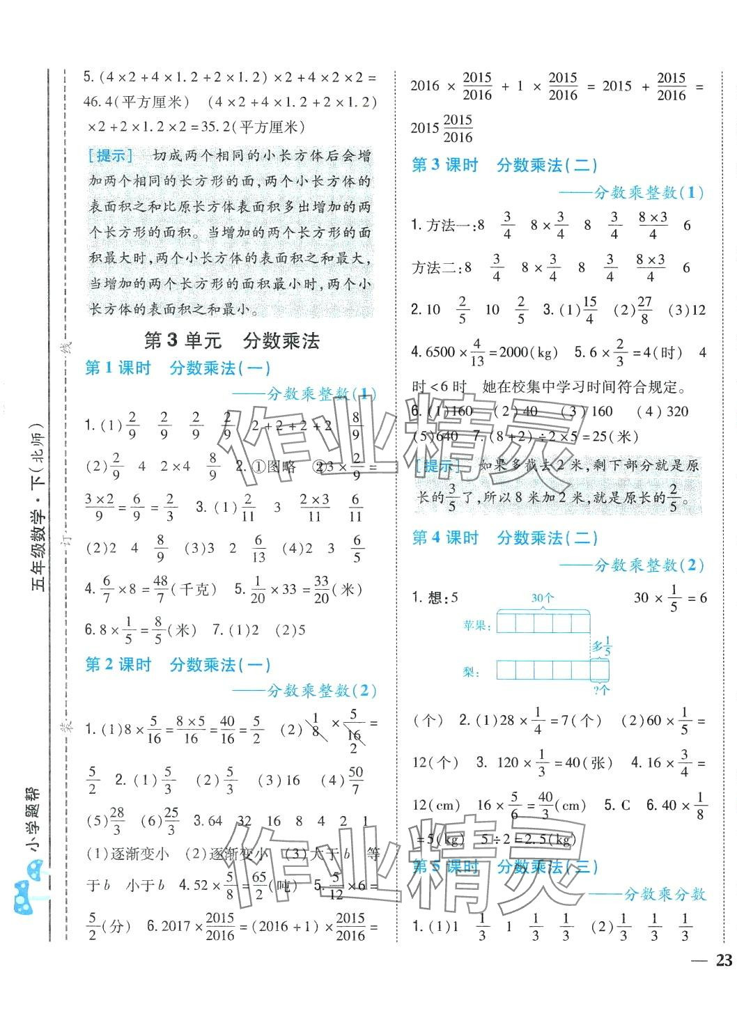 注:目前有些书本章节名称可能整理的还不是很完善,但都是按照顺序排列的,请同学们按照顺序仔细查找。练习册 2024年小学题帮五年级数学下册北师大版 答案主要是用来给同学们做完题方便对答案用的,请勿直接抄袭。