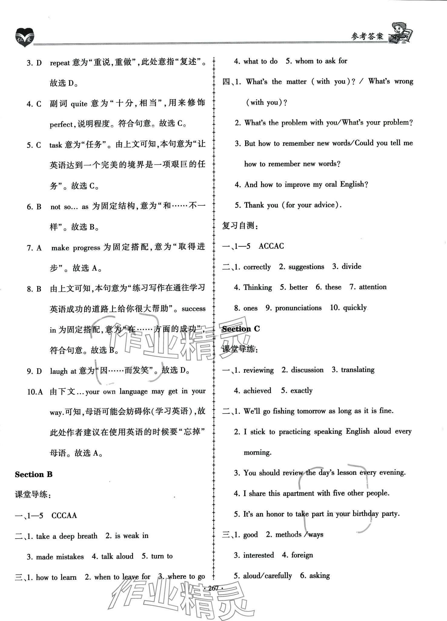 注:目前有些书本章节名称可能整理的还不是很完善,但都是按照顺序排列的,请同学们按照顺序仔细查找。练习册 2024年仁爱英语同步学案九年级全一册仁爱版 答案主要是用来给同学们做完题方便对答案用的,请勿直接抄袭。
