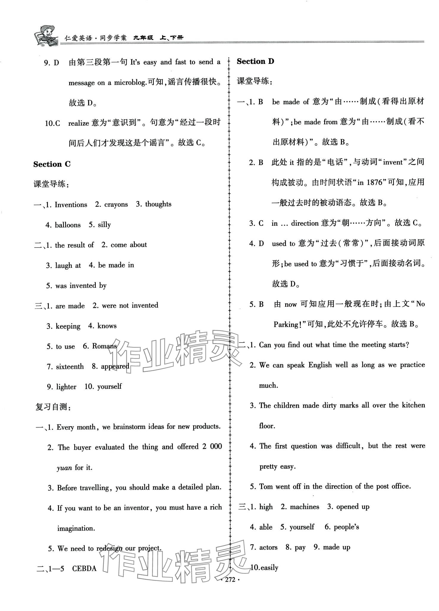 注:目前有些书本章节名称可能整理的还不是很完善,但都是按照顺序排列的,请同学们按照顺序仔细查找。练习册 2024年仁爱英语同步学案九年级全一册仁爱版 答案主要是用来给同学们做完题方便对答案用的,请勿直接抄袭。