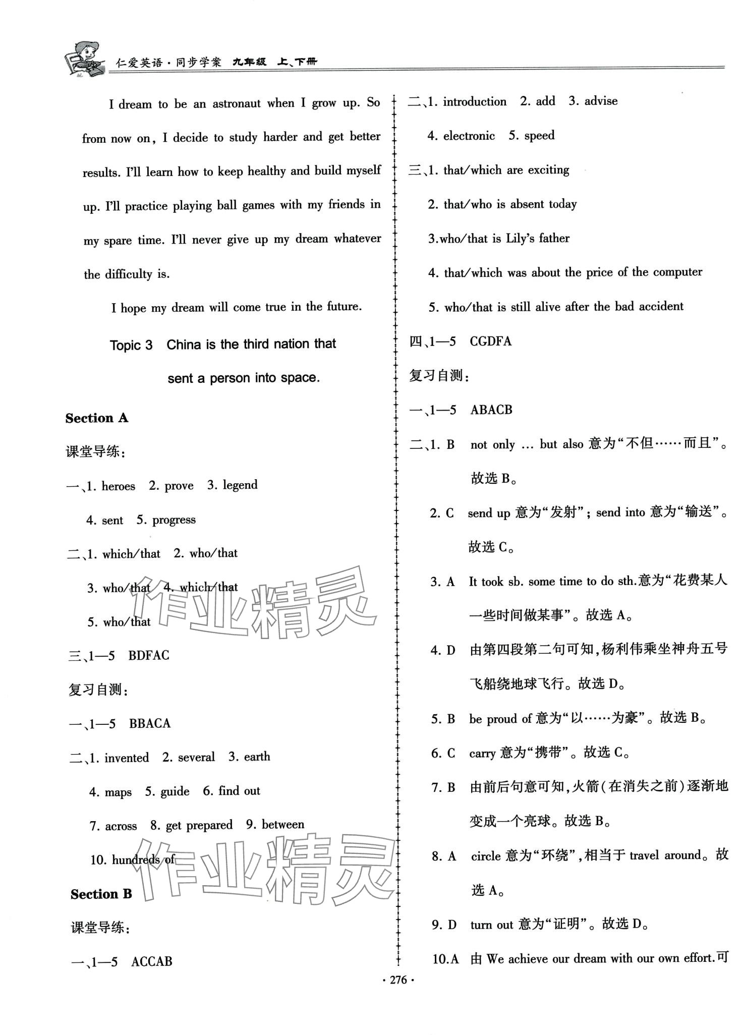 注:目前有些书本章节名称可能整理的还不是很完善,但都是按照顺序排列的,请同学们按照顺序仔细查找。练习册 2024年仁爱英语同步学案九年级全一册仁爱版 答案主要是用来给同学们做完题方便对答案用的,请勿直接抄袭。