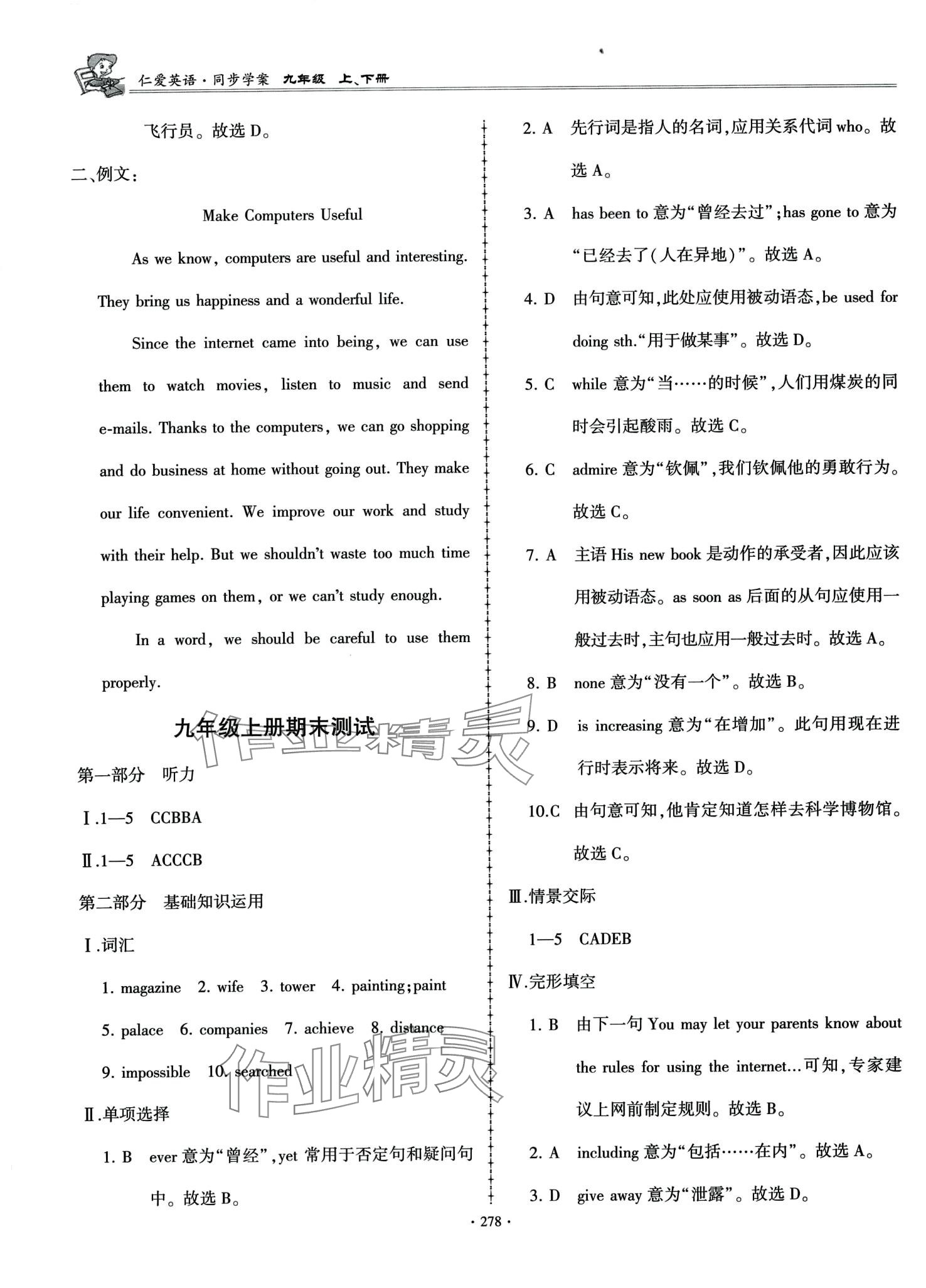 注:目前有些书本章节名称可能整理的还不是很完善,但都是按照顺序排列的,请同学们按照顺序仔细查找。练习册 2024年仁爱英语同步学案九年级全一册仁爱版 答案主要是用来给同学们做完题方便对答案用的,请勿直接抄袭。