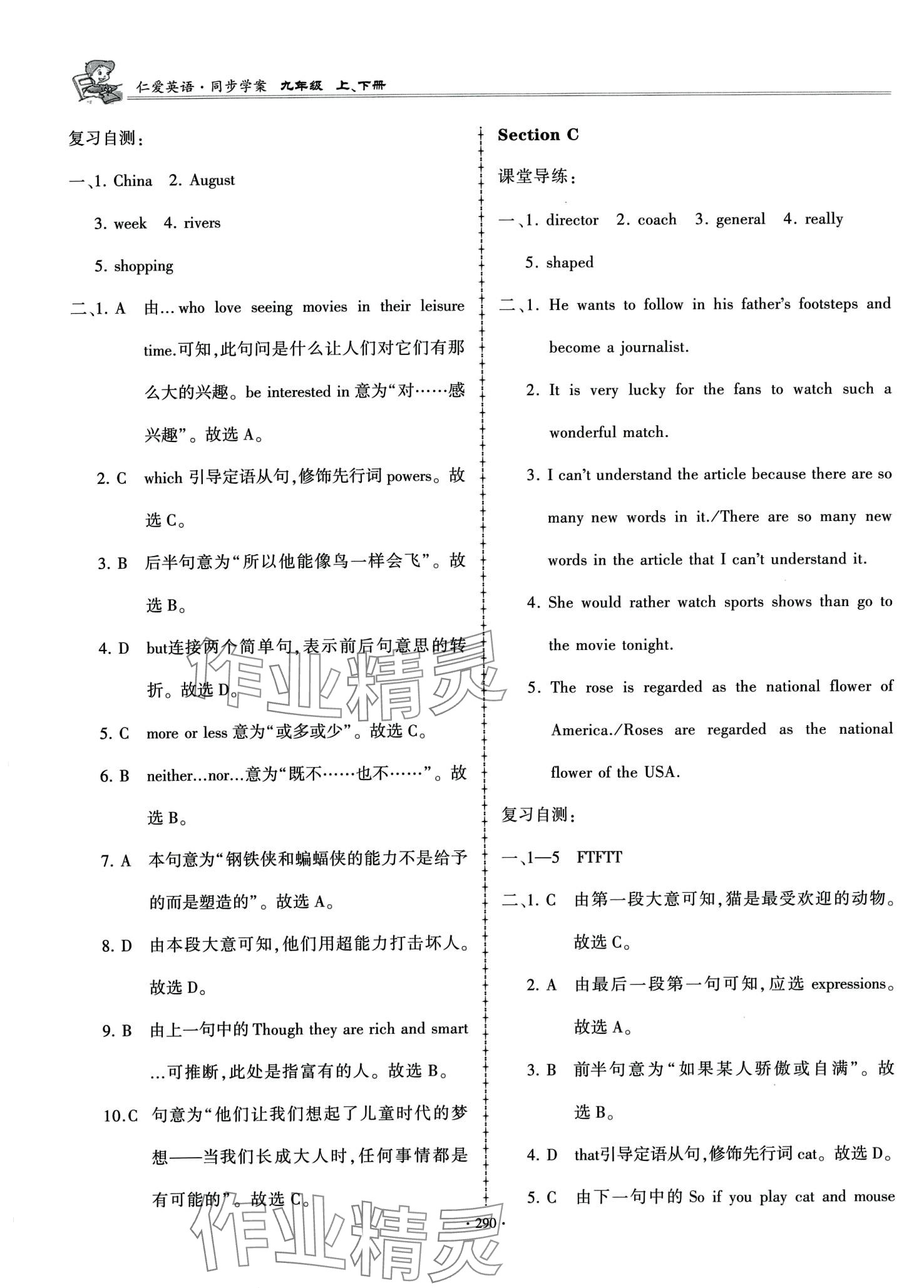 注:目前有些书本章节名称可能整理的还不是很完善,但都是按照顺序排列的,请同学们按照顺序仔细查找。练习册 2024年仁爱英语同步学案九年级全一册仁爱版 答案主要是用来给同学们做完题方便对答案用的,请勿直接抄袭。