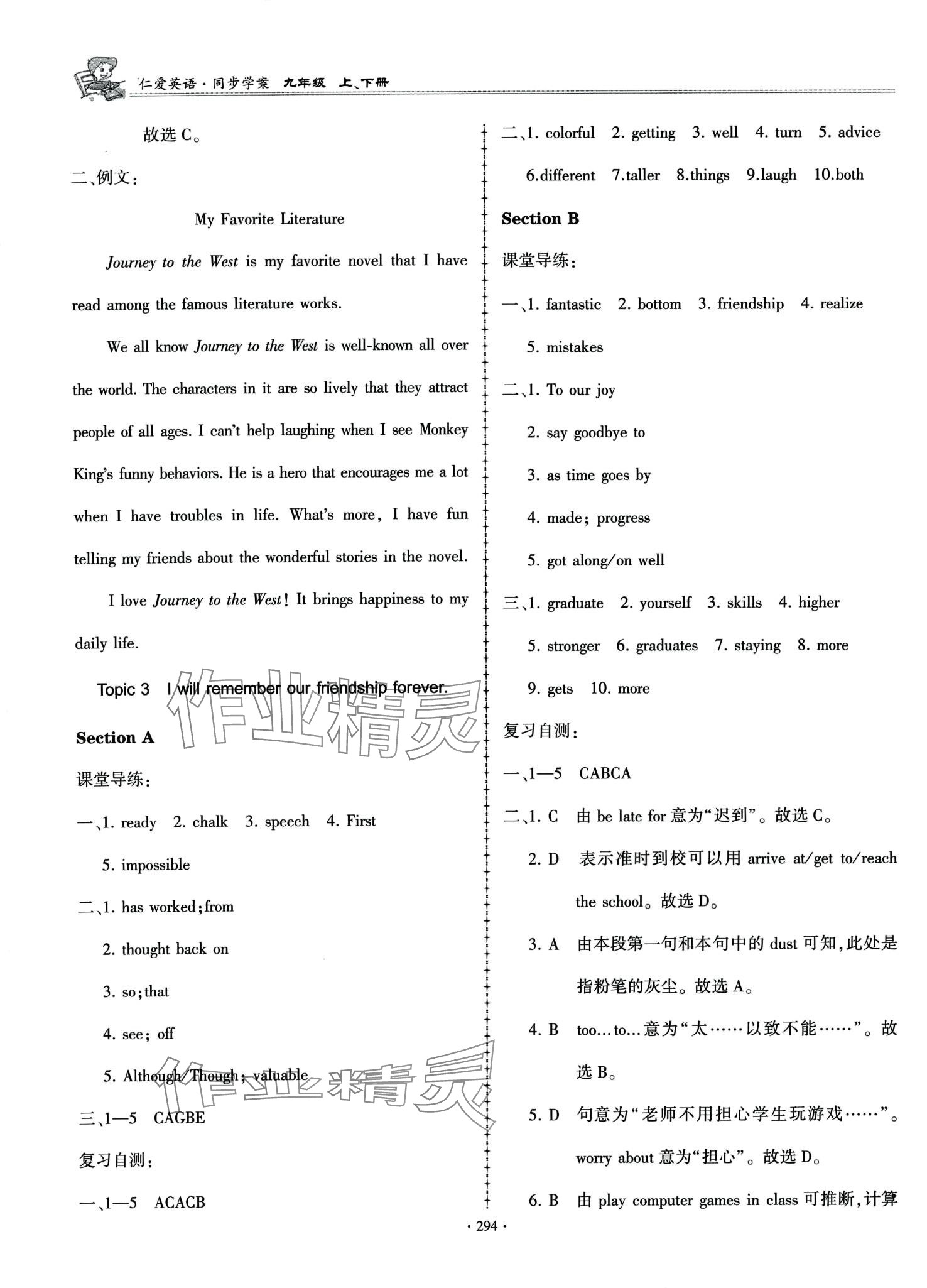 注:目前有些书本章节名称可能整理的还不是很完善,但都是按照顺序排列的,请同学们按照顺序仔细查找。练习册 2024年仁爱英语同步学案九年级全一册仁爱版 答案主要是用来给同学们做完题方便对答案用的,请勿直接抄袭。