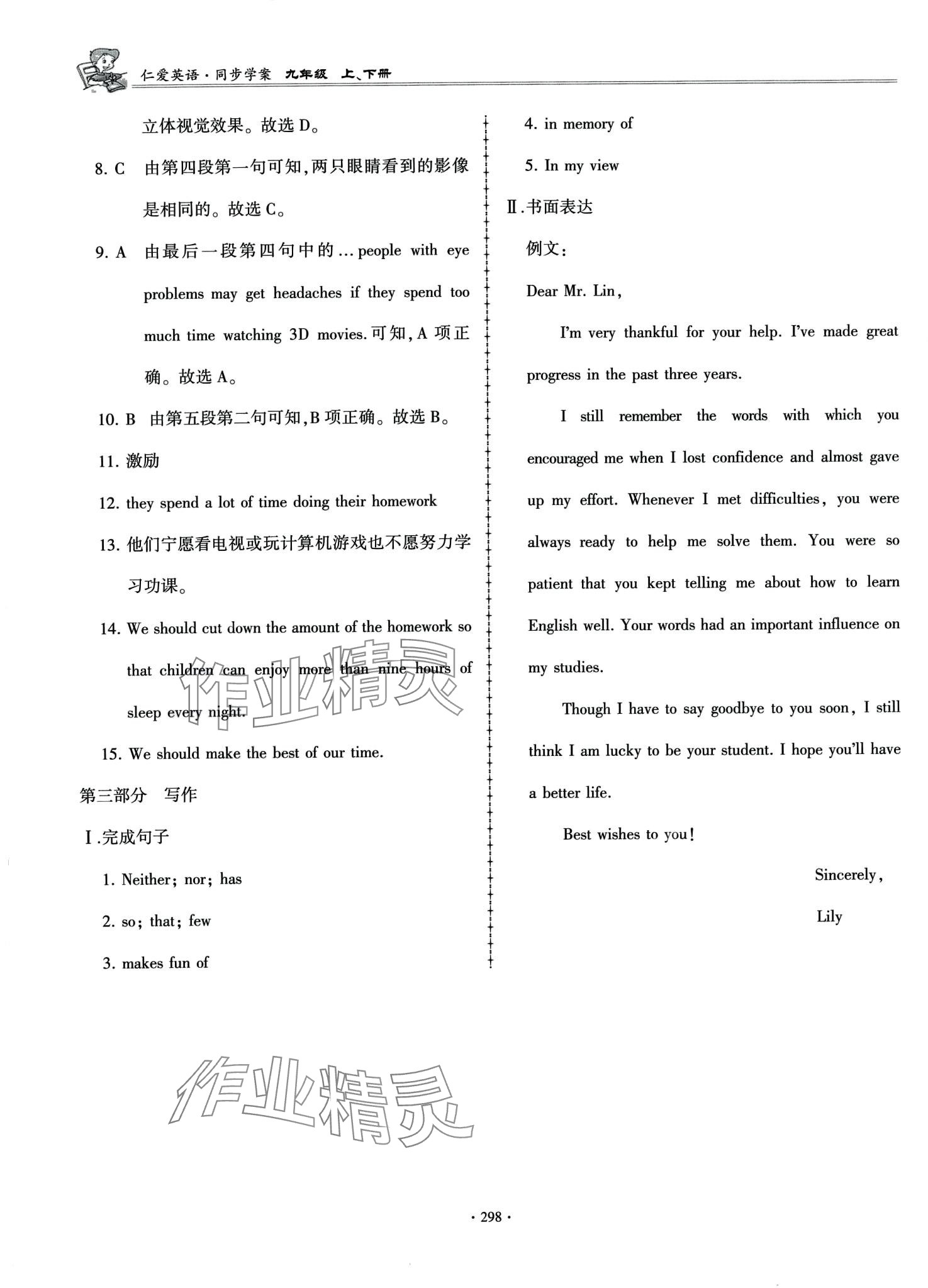 注:目前有些书本章节名称可能整理的还不是很完善,但都是按照顺序排列的,请同学们按照顺序仔细查找。练习册 2024年仁爱英语同步学案九年级全一册仁爱版 答案主要是用来给同学们做完题方便对答案用的,请勿直接抄袭。