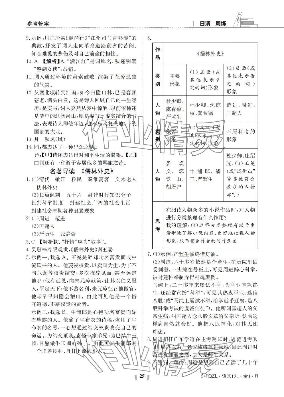 注:目前有些书本章节名称可能整理的还不是很完善,但都是按照顺序排列的,请同学们按照顺序仔细查找。练习册 2024年日清周练九年级语文全一册人教版 答案主要是用来给同学们做完题方便对答案用的,请勿直接抄袭。