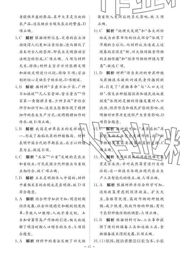 注:目前有些书本章节名称可能整理的还不是很完善,但都是按照顺序排列的,请同学们按照顺序仔细查找。练习册 2024年能力培养与测试高中历史选择性必修2人教版 答案主要是用来给同学们做完题方便对答案用的,请勿直接抄袭。