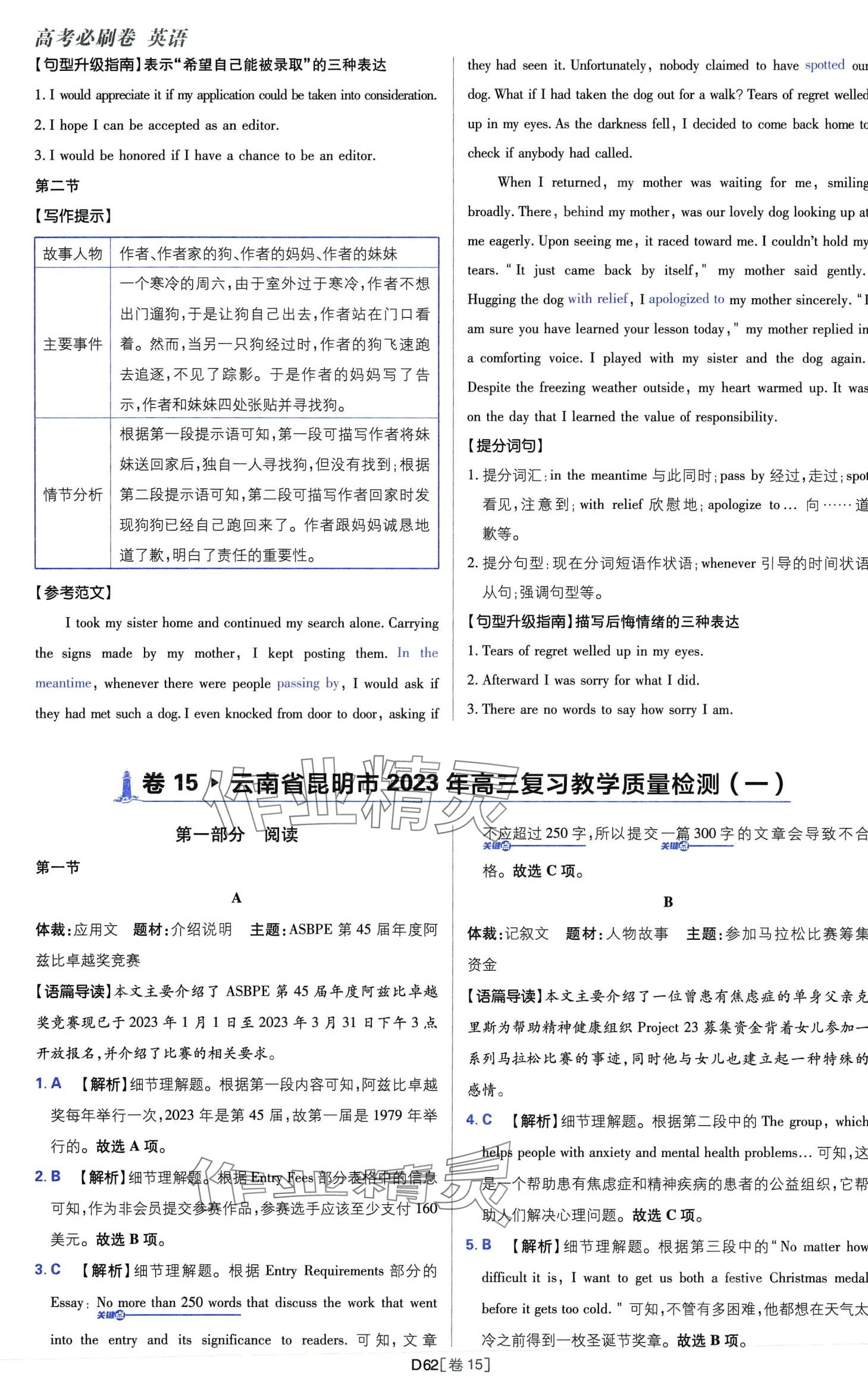注:目前有些书本章节名称可能整理的还不是很完善,但都是按照顺序排列的,请同学们按照顺序仔细查找。练习册 2024年高考必刷卷开明出版社高中英语 答案主要是用来给同学们做完题方便对答案用的,请勿直接抄袭。