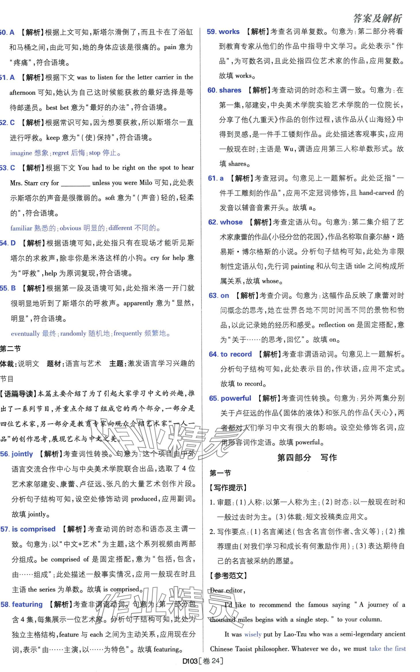 注:目前有些书本章节名称可能整理的还不是很完善,但都是按照顺序排列的,请同学们按照顺序仔细查找。练习册 2024年高考必刷卷开明出版社高中英语 答案主要是用来给同学们做完题方便对答案用的,请勿直接抄袭。