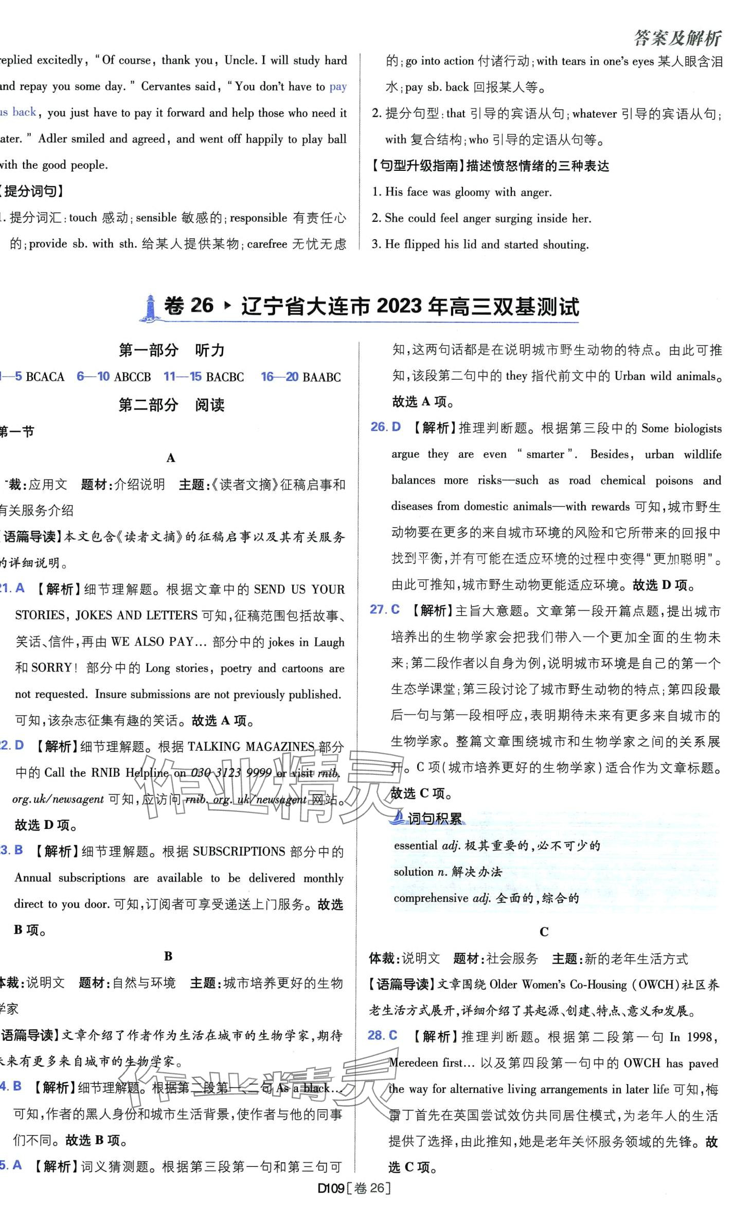 注:目前有些书本章节名称可能整理的还不是很完善,但都是按照顺序排列的,请同学们按照顺序仔细查找。练习册 2024年高考必刷卷开明出版社高中英语 答案主要是用来给同学们做完题方便对答案用的,请勿直接抄袭。