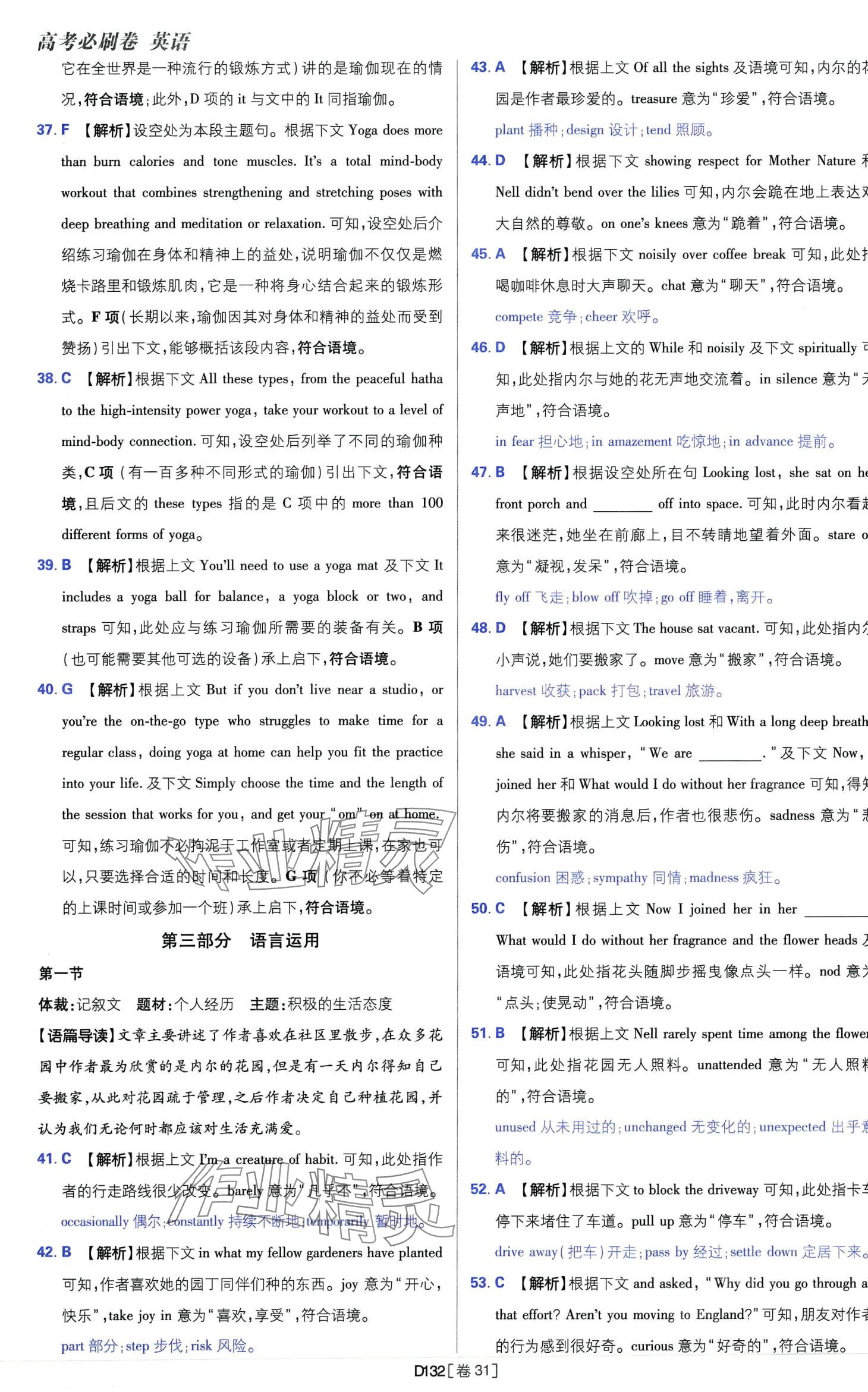 注:目前有些书本章节名称可能整理的还不是很完善,但都是按照顺序排列的,请同学们按照顺序仔细查找。练习册 2024年高考必刷卷开明出版社高中英语 答案主要是用来给同学们做完题方便对答案用的,请勿直接抄袭。