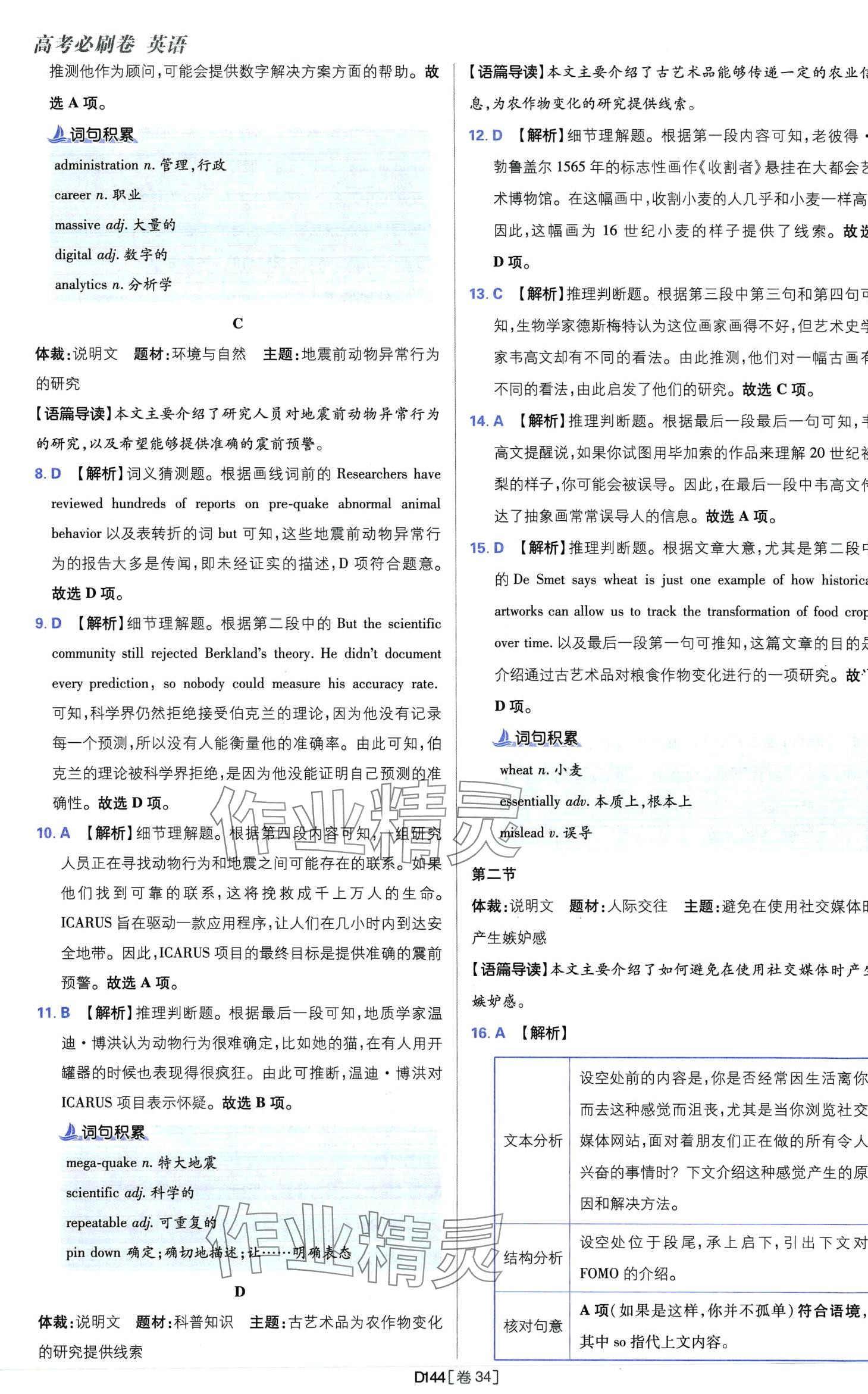 注:目前有些书本章节名称可能整理的还不是很完善,但都是按照顺序排列的,请同学们按照顺序仔细查找。练习册 2024年高考必刷卷开明出版社高中英语 答案主要是用来给同学们做完题方便对答案用的,请勿直接抄袭。