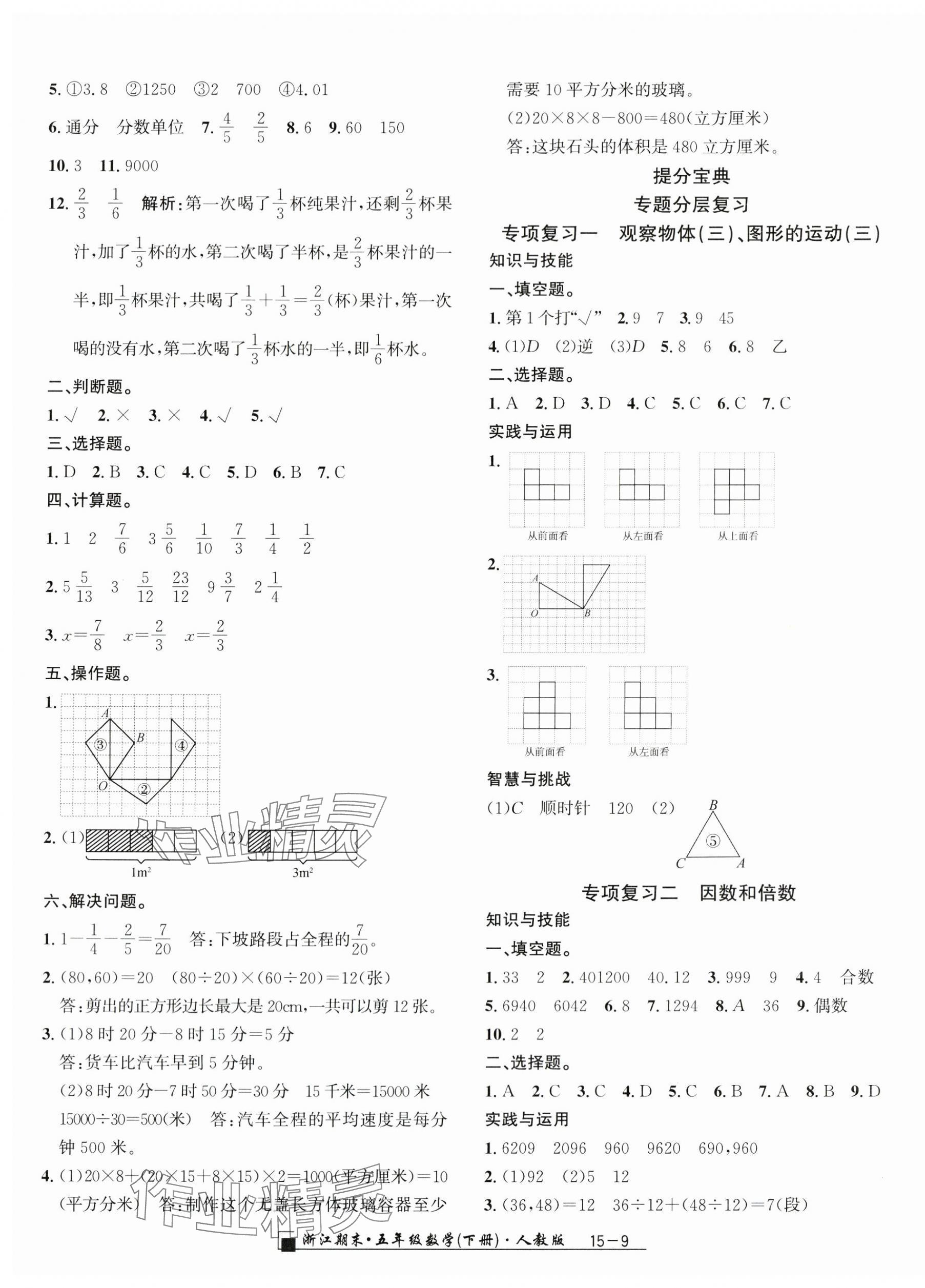 注:目前有些书本章节名称可能整理的还不是很完善,但都是按照顺序排列的,请同学们按照顺序仔细查找。练习册 2024年励耘书业浙江期末五年级数学下册人教版 答案主要是用来给同学们做完题方便对答案用的,请勿直接抄袭。