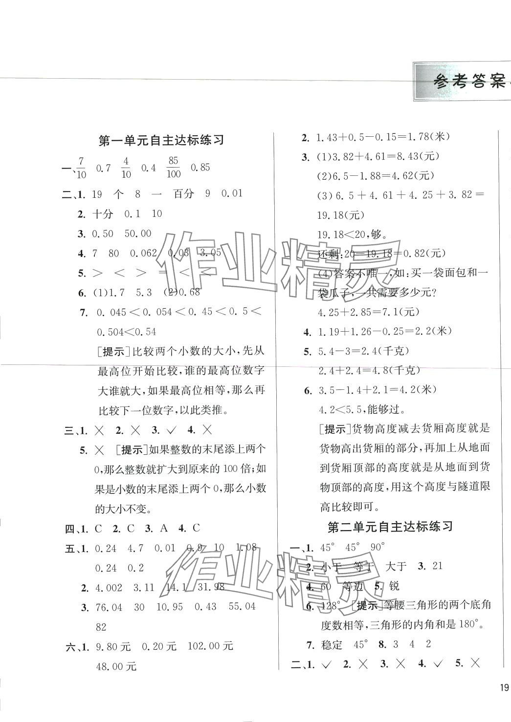 注:目前有些书本章节名称可能整理的还不是很完善,但都是按照顺序排列的,请同学们按照顺序仔细查找。练习册 2024年1课3练江苏人民出版社四年级数学下册北师大版 答案主要是用来给同学们做完题方便对答案用的,请勿直接抄袭。
