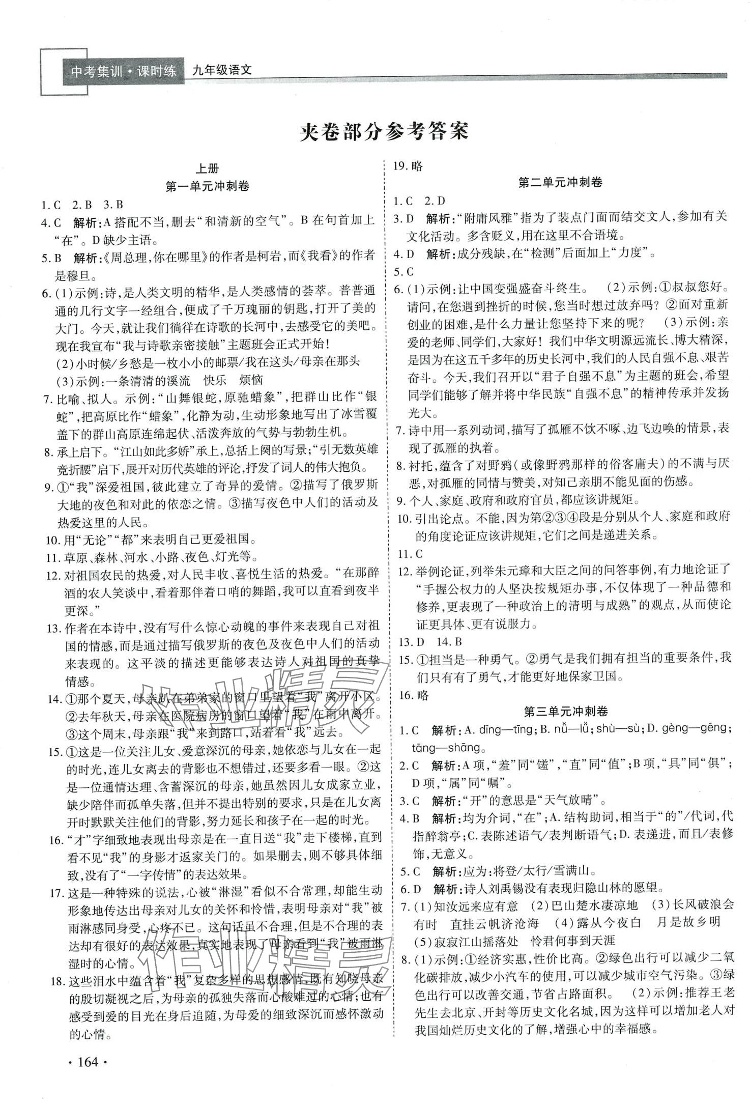 注:目前有些书本章节名称可能整理的还不是很完善,但都是按照顺序排列的,请同学们按照顺序仔细查找。练习册 2024年中考集训课时练九年级语文全一册人教版 答案主要是用来给同学们做完题方便对答案用的,请勿直接抄袭。