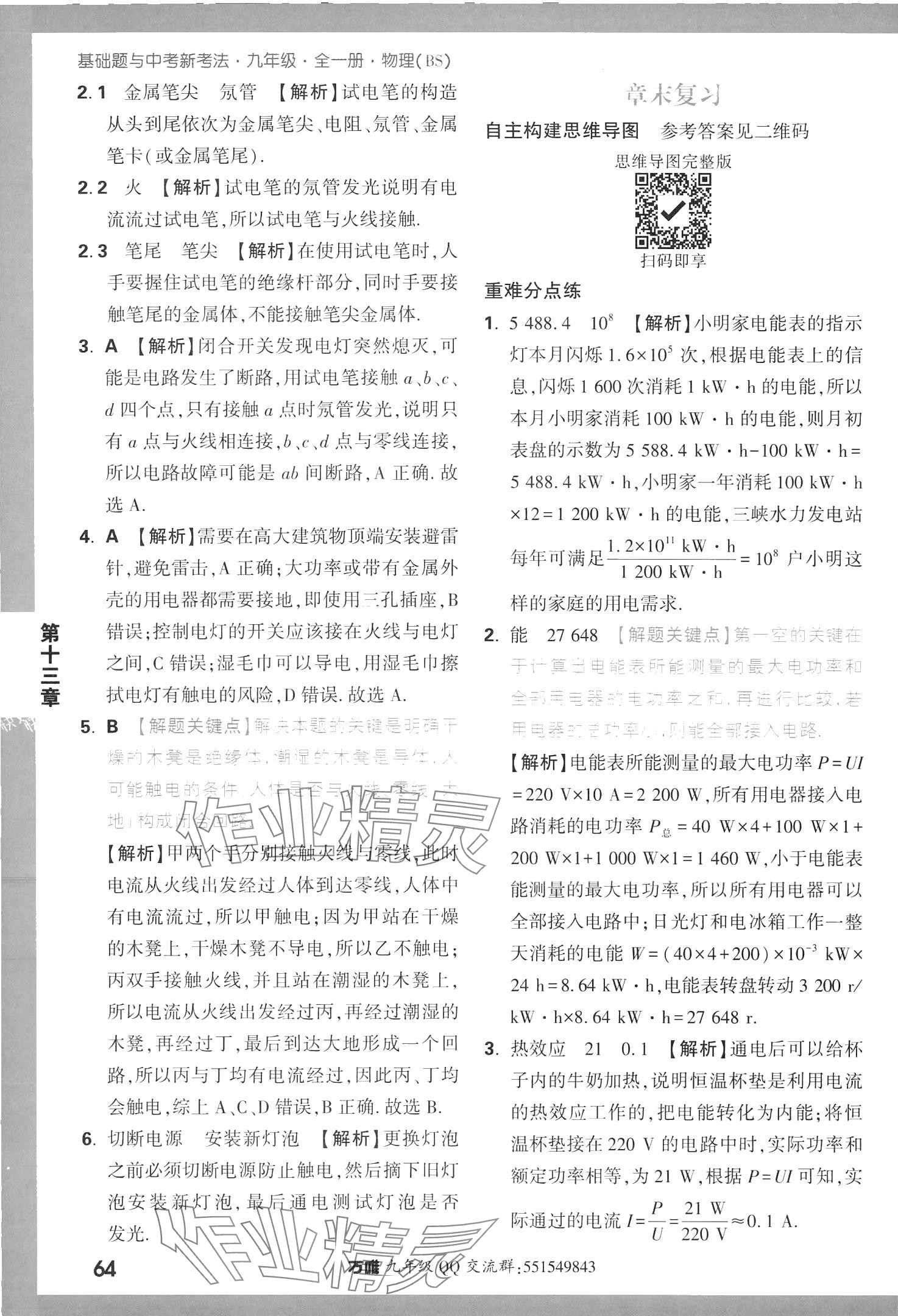 注:目前有些书本章节名称可能整理的还不是很完善,但都是按照顺序排列的,请同学们按照顺序仔细查找。练习册 2024年基础题与中考新考法九年级物理全一册北师大版 答案主要是用来给同学们做完题方便对答案用的,请勿直接抄袭。