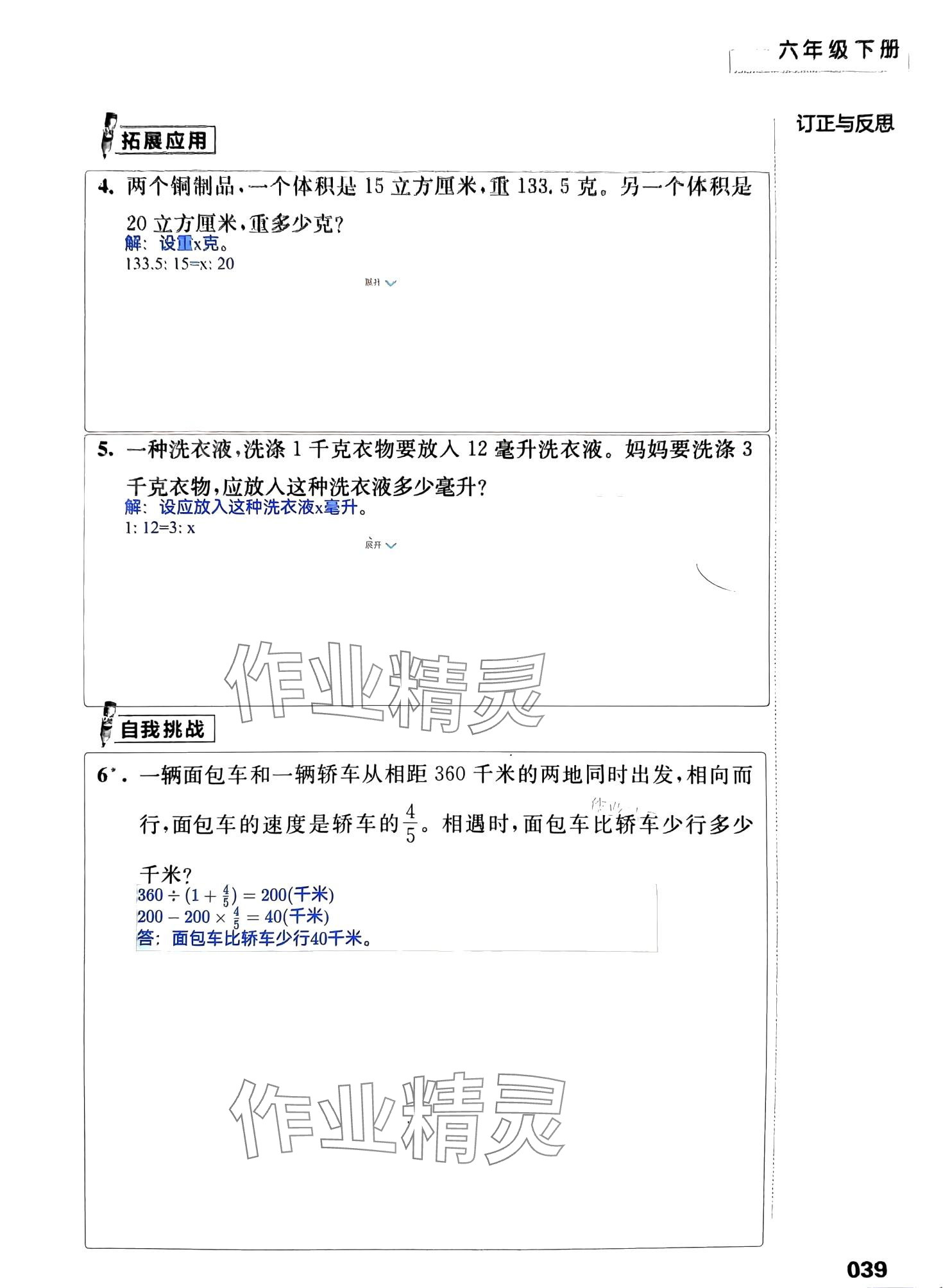 《2024年练习与测试活页卷六年级数学下册苏教版》