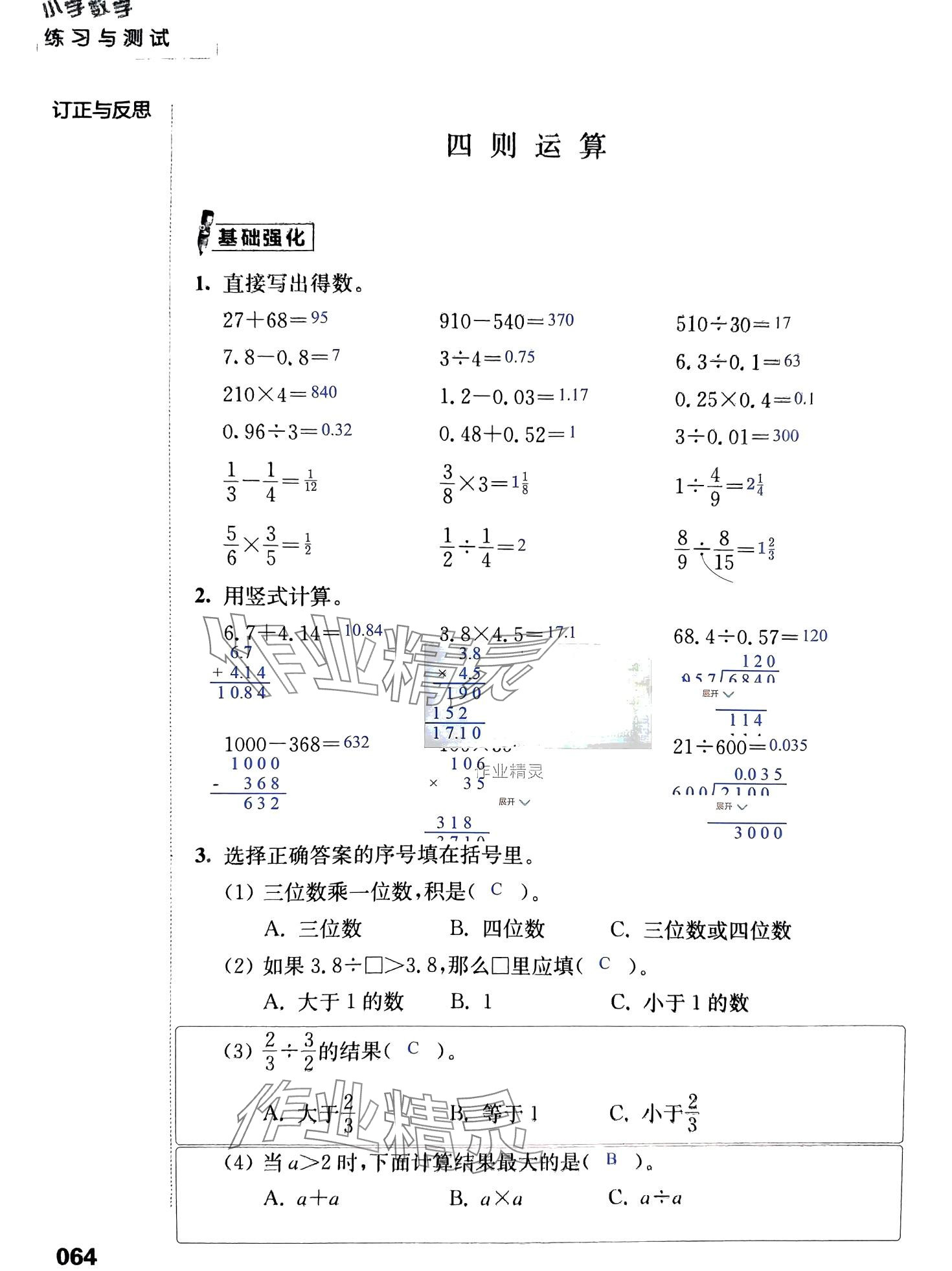 注:目前有些书本章节名称可能整理的还不是很完善,但都是按照顺序排列的,请同学们按照顺序仔细查找。练习册 2024年练习与测试活页卷六年级数学下册苏教版 答案主要是用来给同学们做完题方便对答案用的,请勿直接抄袭。