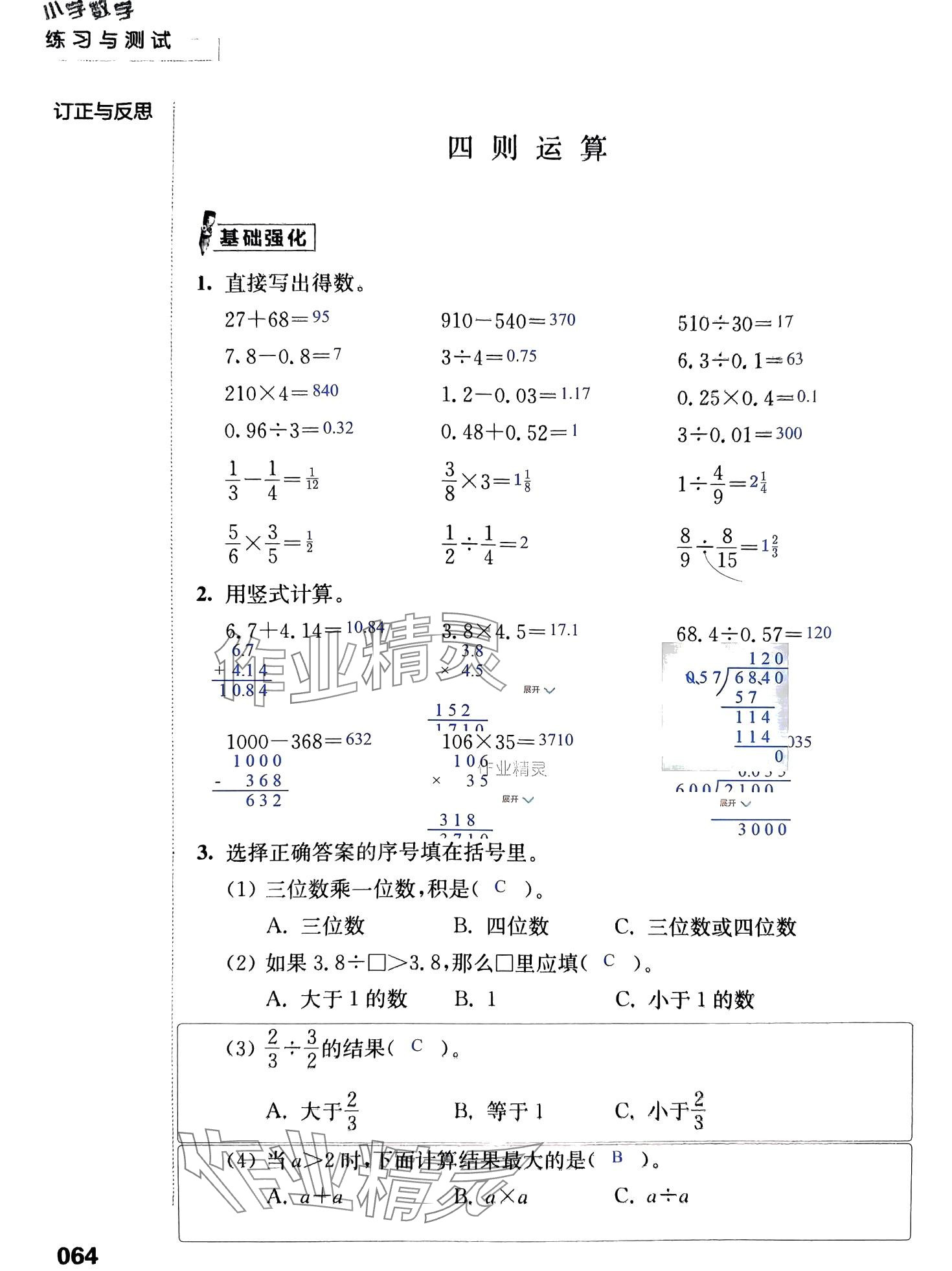 注:目前有些书本章节名称可能整理的还不是很完善,但都是按照顺序排列的,请同学们按照顺序仔细查找。练习册 2024年练习与测试活页卷六年级数学下册苏教版 答案主要是用来给同学们做完题方便对答案用的,请勿直接抄袭。
