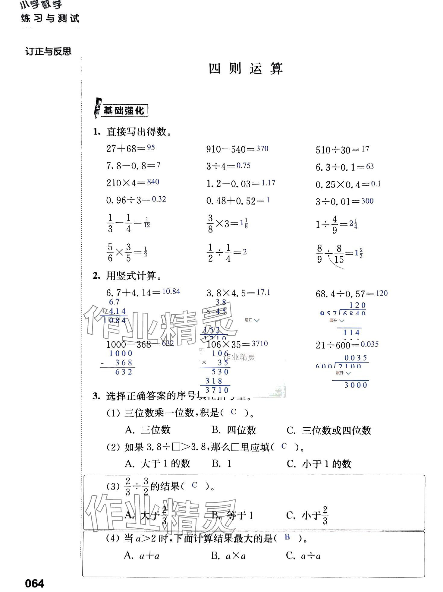 注:目前有些书本章节名称可能整理的还不是很完善,但都是按照顺序排列的,请同学们按照顺序仔细查找。练习册 2024年练习与测试活页卷六年级数学下册苏教版 答案主要是用来给同学们做完题方便对答案用的,请勿直接抄袭。