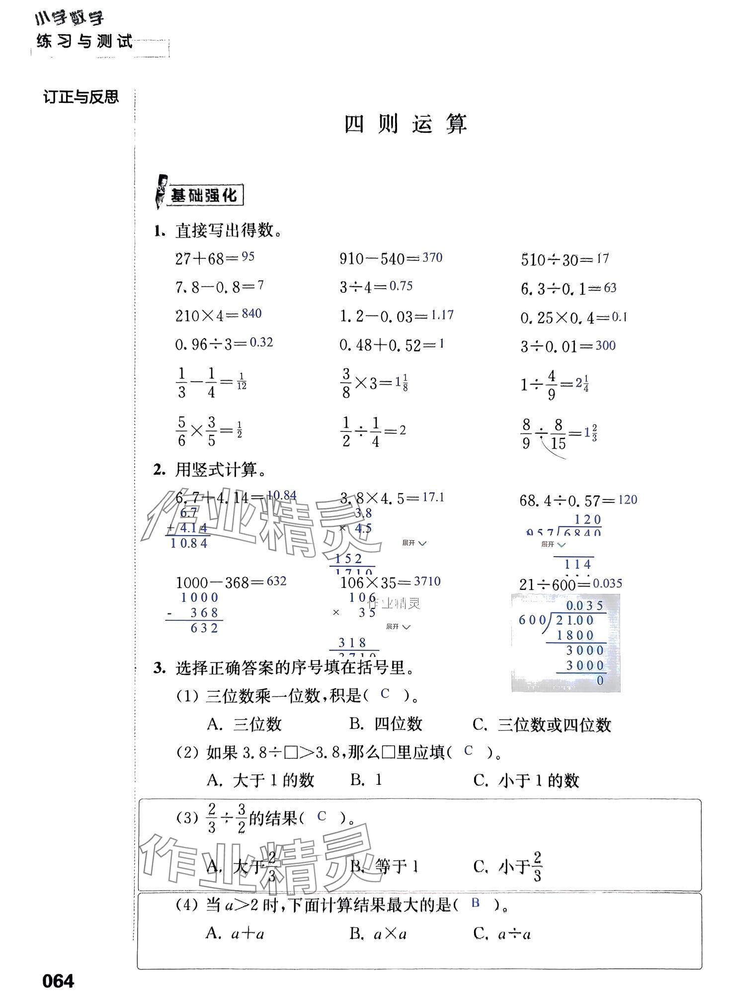 注:目前有些书本章节名称可能整理的还不是很完善,但都是按照顺序排列的,请同学们按照顺序仔细查找。练习册 2024年练习与测试活页卷六年级数学下册苏教版 答案主要是用来给同学们做完题方便对答案用的,请勿直接抄袭。