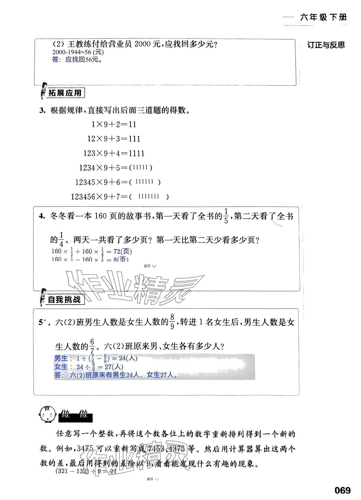 注:目前有些书本章节名称可能整理的还不是很完善,但都是按照顺序排列的,请同学们按照顺序仔细查找。练习册 2024年练习与测试活页卷六年级数学下册苏教版 答案主要是用来给同学们做完题方便对答案用的,请勿直接抄袭。