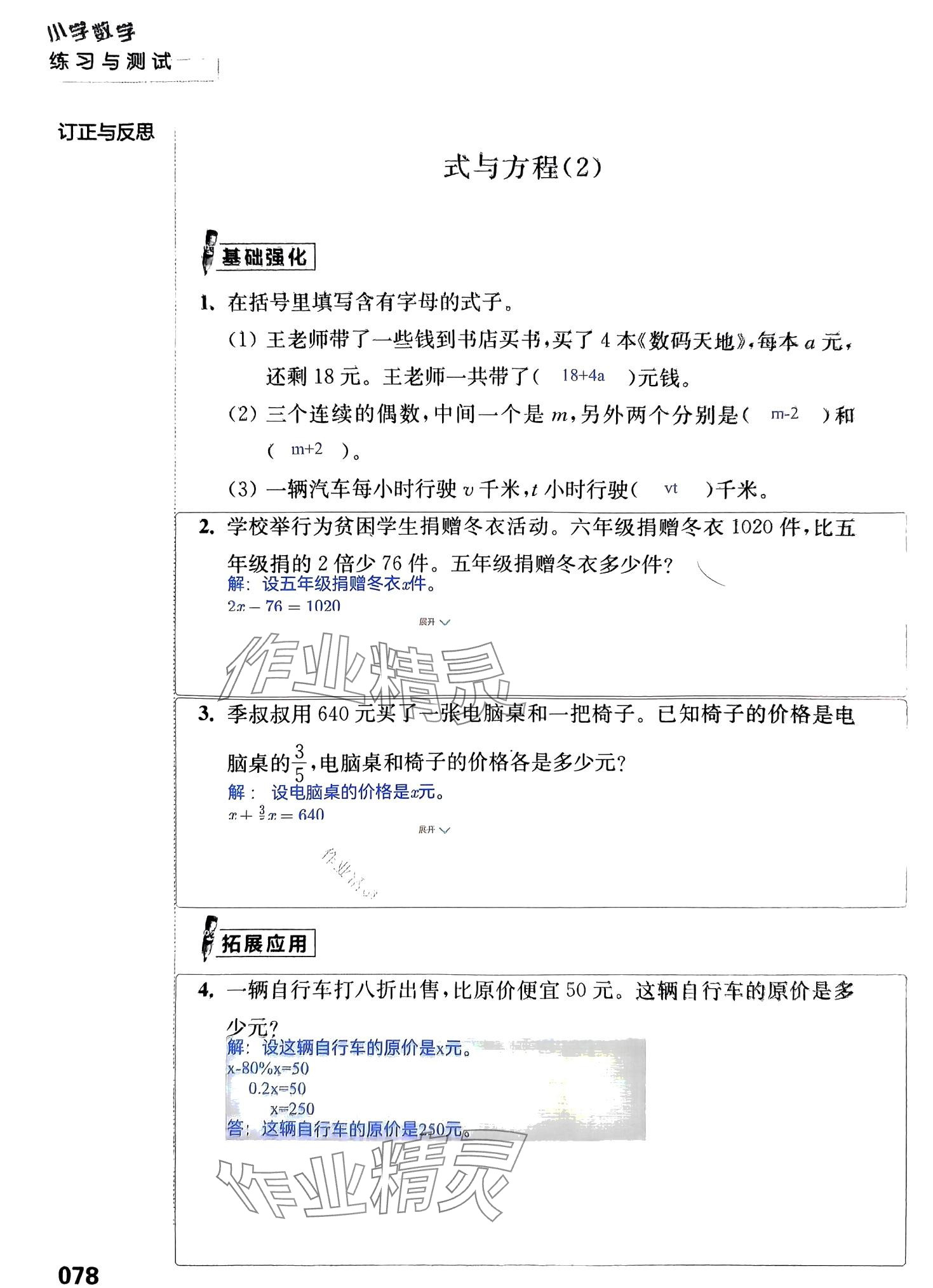 注:目前有些书本章节名称可能整理的还不是很完善,但都是按照顺序排列的,请同学们按照顺序仔细查找。练习册 2024年练习与测试活页卷六年级数学下册苏教版 答案主要是用来给同学们做完题方便对答案用的,请勿直接抄袭。