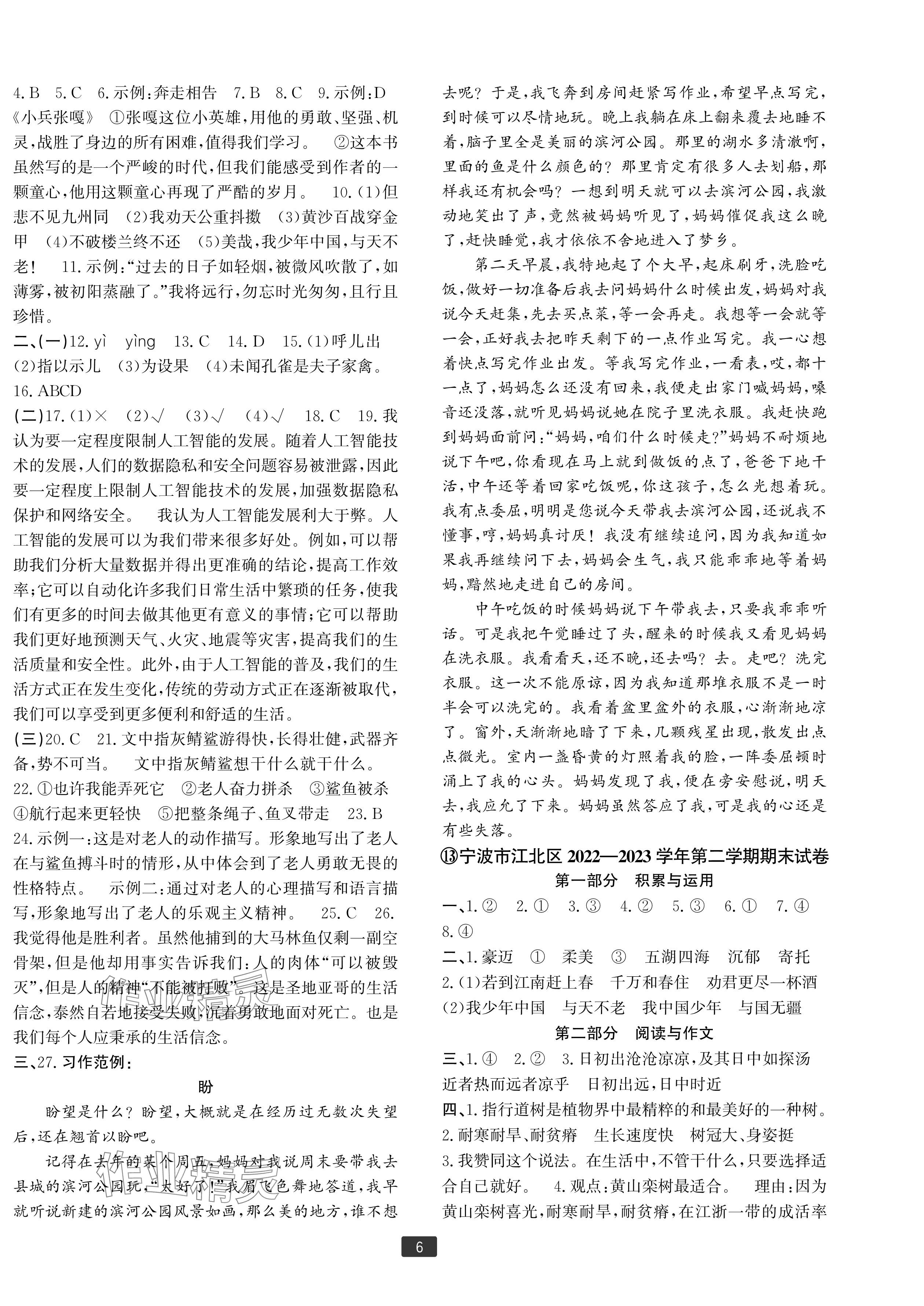 《2024年浙江新期末六年级语文下册人教版宁波专版》