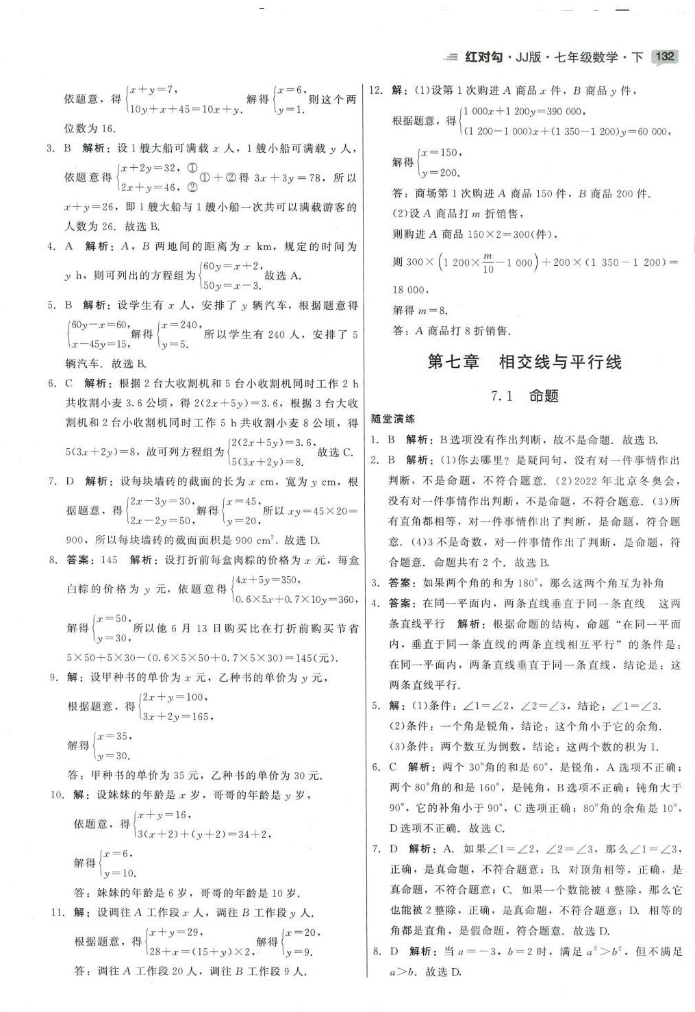 注:目前有些书本章节名称可能整理的还不是很完善,但都是按照顺序排列的,请同学们按照顺序仔细查找。练习册 2024年红对勾45分钟作业与单元评估七年级数学下册冀教版 答案主要是用来给同学们做完题方便对答案用的,请勿直接抄袭。