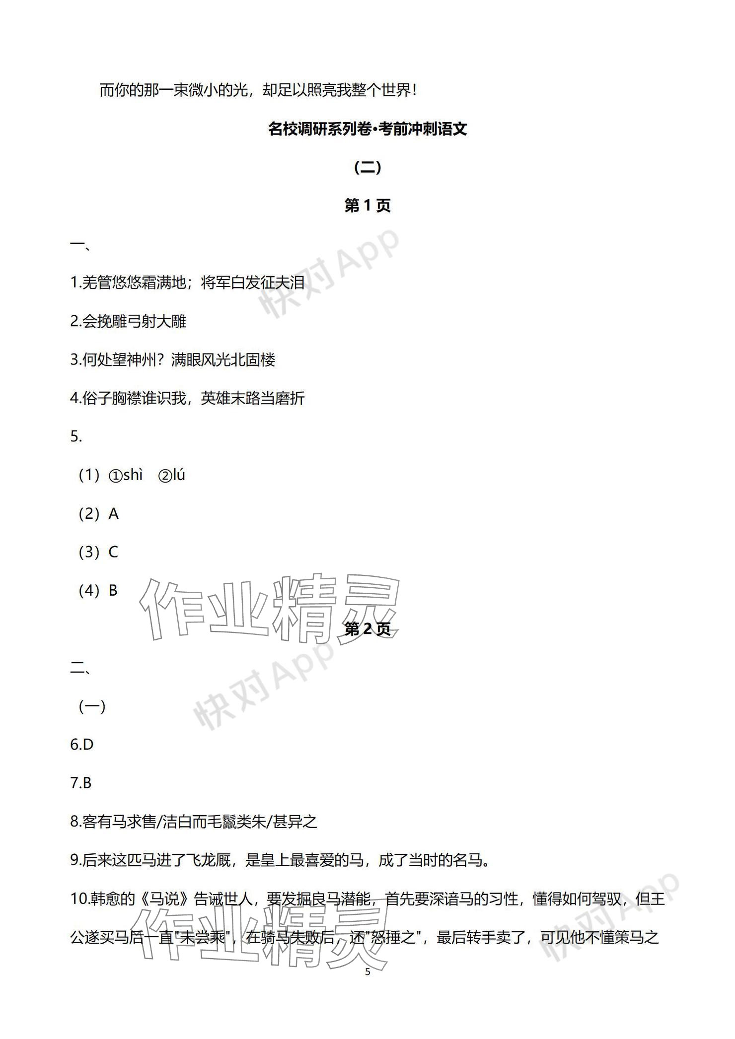 注:目前有些书本章节名称可能整理的还不是很完善,但都是按照顺序排列的,请同学们按照顺序仔细查找。练习册 2024年中考考前冲刺活页卷综合 答案主要是用来给同学们做完题方便对答案用的,请勿直接抄袭。