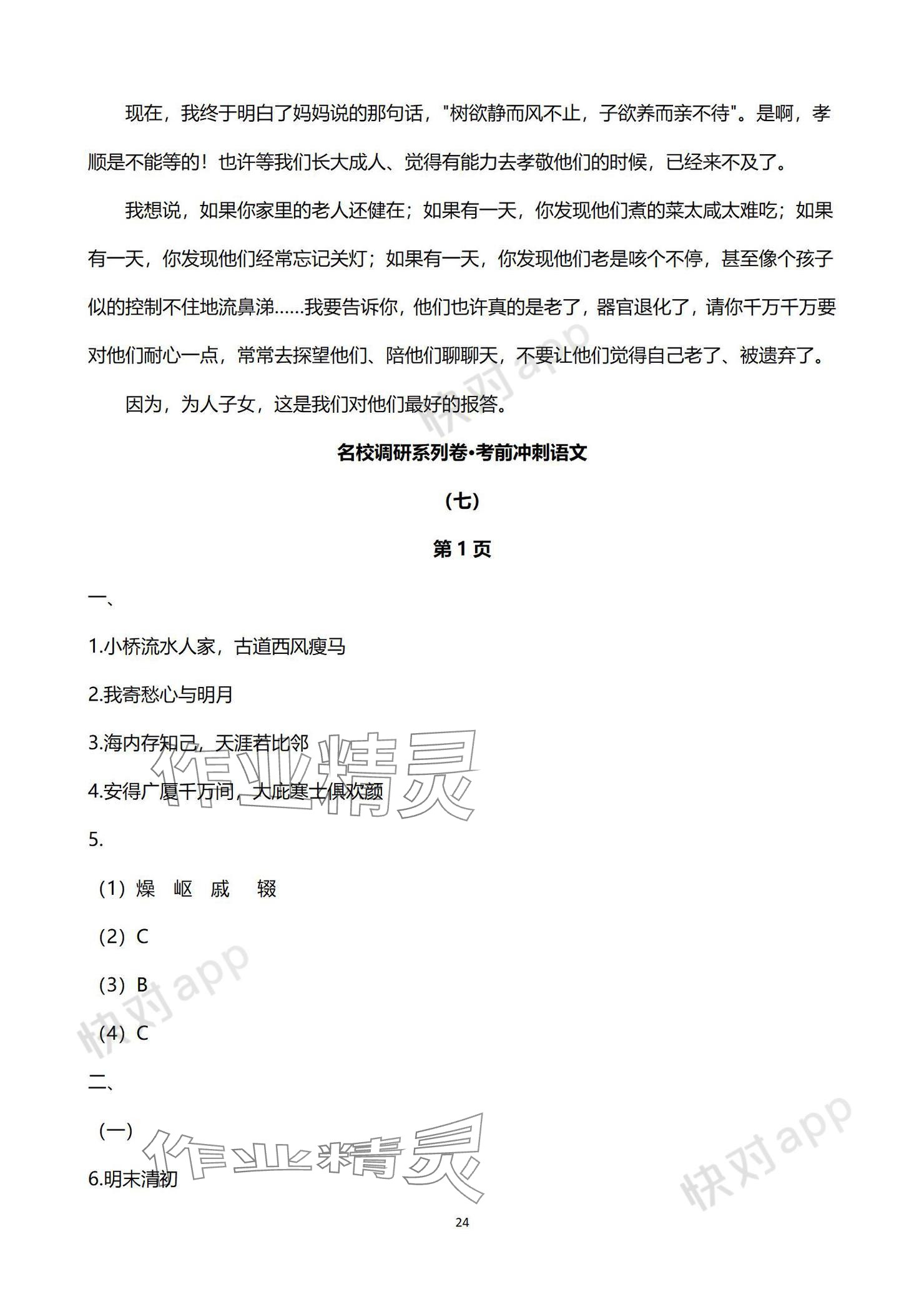 注:目前有些书本章节名称可能整理的还不是很完善,但都是按照顺序排列的,请同学们按照顺序仔细查找。练习册 2024年中考考前冲刺活页卷综合 答案主要是用来给同学们做完题方便对答案用的,请勿直接抄袭。