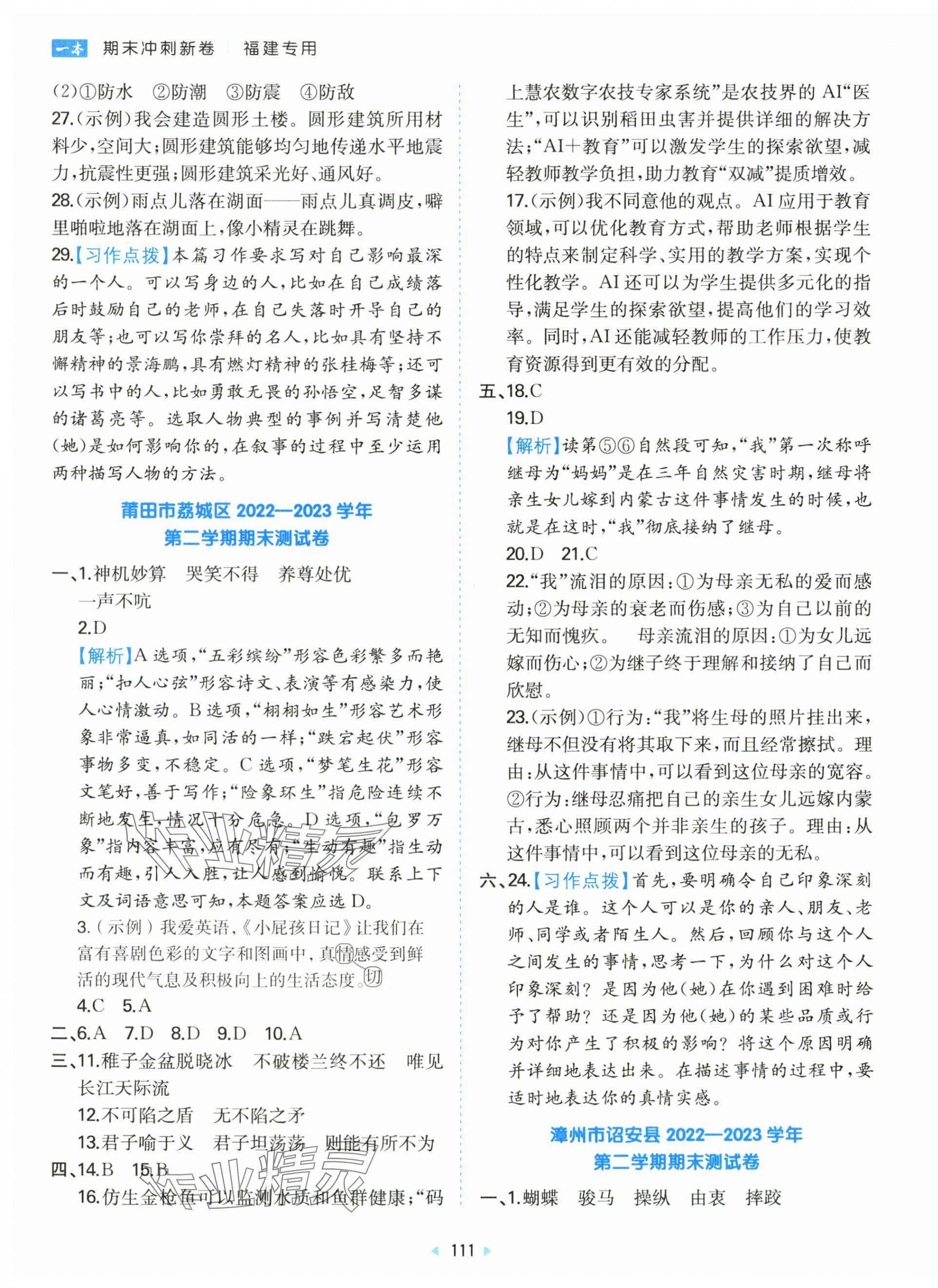 注:目前有些书本章节名称可能整理的还不是很完善,但都是按照顺序排列的,请同学们按照顺序仔细查找。练习册 2024年一本期末冲刺新卷五年级语文下册人教版福建专版 答案主要是用来给同学们做完题方便对答案用的,请勿直接抄袭。