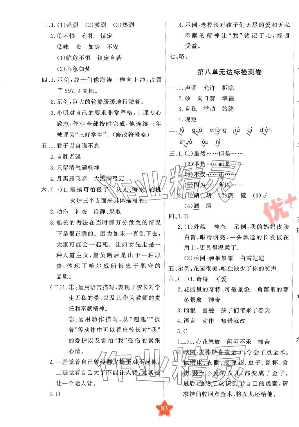 注:目前有些书本章节名称可能整理的还不是很完善,但都是按照顺序排列的,请同学们按照顺序仔细查找。练习册 2024年优加密卷四年级语文下册人教版 答案主要是用来给同学们做完题方便对答案用的,请勿直接抄袭。